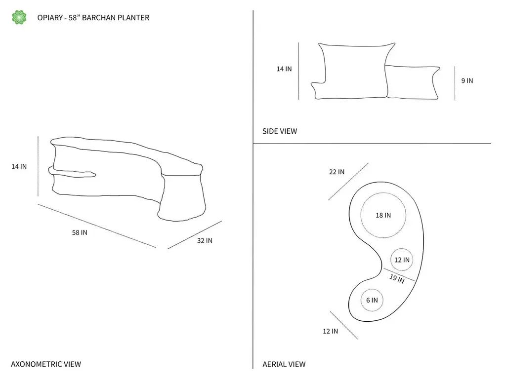 This lightweight, modern concrete planter features an organic silhouette and earthy aesthetic that compliments the live plants inside it. The Barchan is handmade in our Brooklyn studio and can be produced in the color or finish of your choice. Opiary planters come in various forms-- some fill more vertical space while others are horizontal. We recommend pairing the Echelon with Barchan and Jabbah planters for maximum design impact. All planters can float on hidden casters to make rearranging your space easy.DETAILSMeasures: L 73", W 40", H 19".Indoor/outdoor use and extremely weather-resistant.Option to be watertight or include drainage holesFINISHESAvailable in earth, white, light grey, grey, dark grey, and black GFRC Pricing varies based on finish. Please message before purchasingPrice listed is for our standard light grey optionPictured here in our grey cement optionAll Opiary pieces are handcrafted and made-to-order, and dimensions/finishes are approximations. Clients are welcome to visit our Brooklyn studio during the fabrication of pieces.MODIFICATIONSIntegrated casters available for an additional cost. Live or silk plants included for an additional cost.Custom sizes available upon request.Opiary is a Brooklyn-based biophilic design and production studio. We integrate nature in each of our designs, incorporating live greenery and organic shapes into bespoke furniture, planters, and sculpture. Through the ethos of biophilia, our work reflects the shifting, yet timeless relationship between humans and nature.