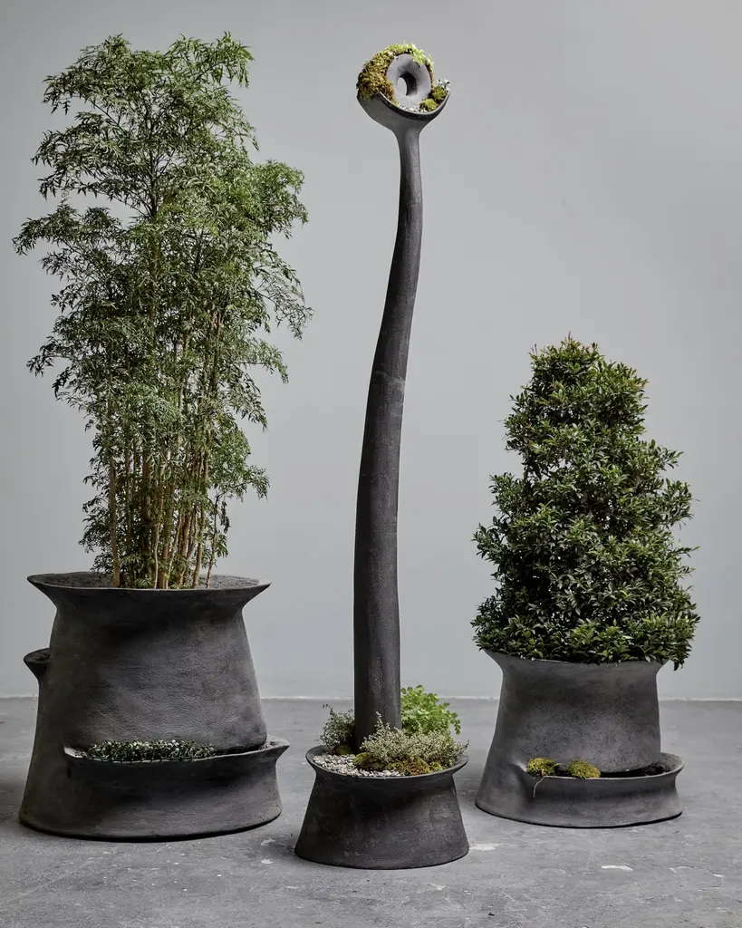 Opiary is a Brooklyn-based biophilic design and production studio. We integrate nature in each of our designs, incorporating live greenery and organic shapes into bespoke furniture, planters, and sculpture. Through the ethos of biophilia, our work reflects the shifting, yet timeless relationship between humans and nature. Measures: (Large : Diameter 32", height 34")This lightweight concrete planter features an organic silhouette and earthy aesthetic that compliments the live plants inside it. The Echelon is handmade in our Brooklyn studio and can be produced in the color or finish of your choice. Opiary planters come in various forms-- some fill more vertical space while others are horizontal. We recommend pairing the Echelon with Barchan and Jabbah planters for maximum design impact. All planters can float on hidden casters to make rearranging your space easy.DetailsIndoor/outdoor use and extremely weather-resistant.Option to be watertight or include drainage holesFinishesAvailable in earth, white, light grey, grey, dark grey, and black GFRC Pricing varies based on finish. Please message before purchasing.Price listed is for our standard light grey option.Pictured here in our grey cement option.All Opiary pieces are handcrafted and made-to-order, and dimensions/finishes are approximations. Clients are welcome to visit our Brooklyn studio during the fabrication of pieces.ModificationsIntegrated casters available for an additional cost. Live or silk plants included for an additional cost.Custom sizes available upon request.