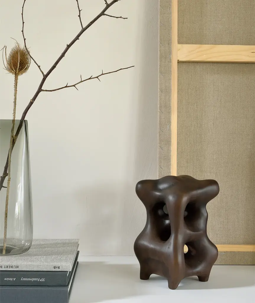The contemporary sculptures series was crafted by our in-house master sculptor, Hartoyo. In each piece, the solid mahogany wood is sublimed into geometric and organic shapes. Beautiful from every angle and with the changing light of the day, these intriguing pieces will layer meaning into your home.