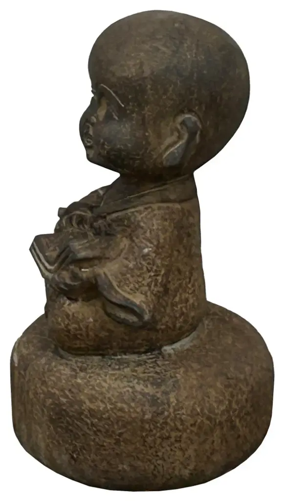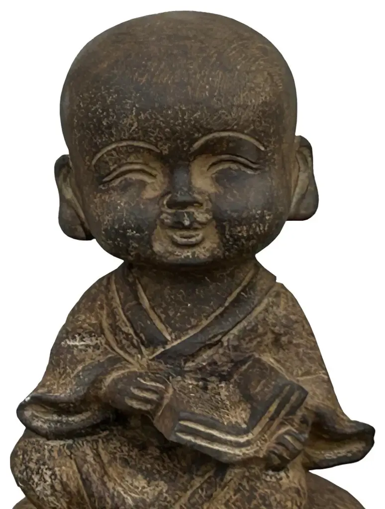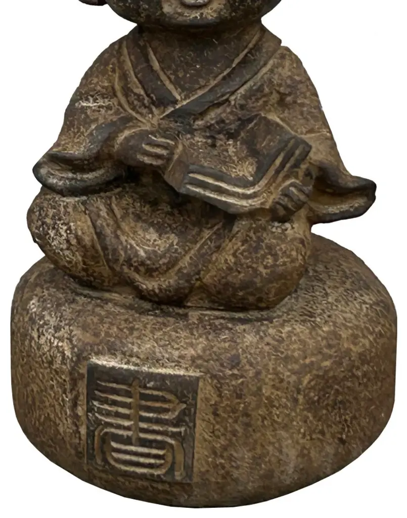 Oriental Gray Stone Little Lohon Monk Reading Book Statue Hws3635