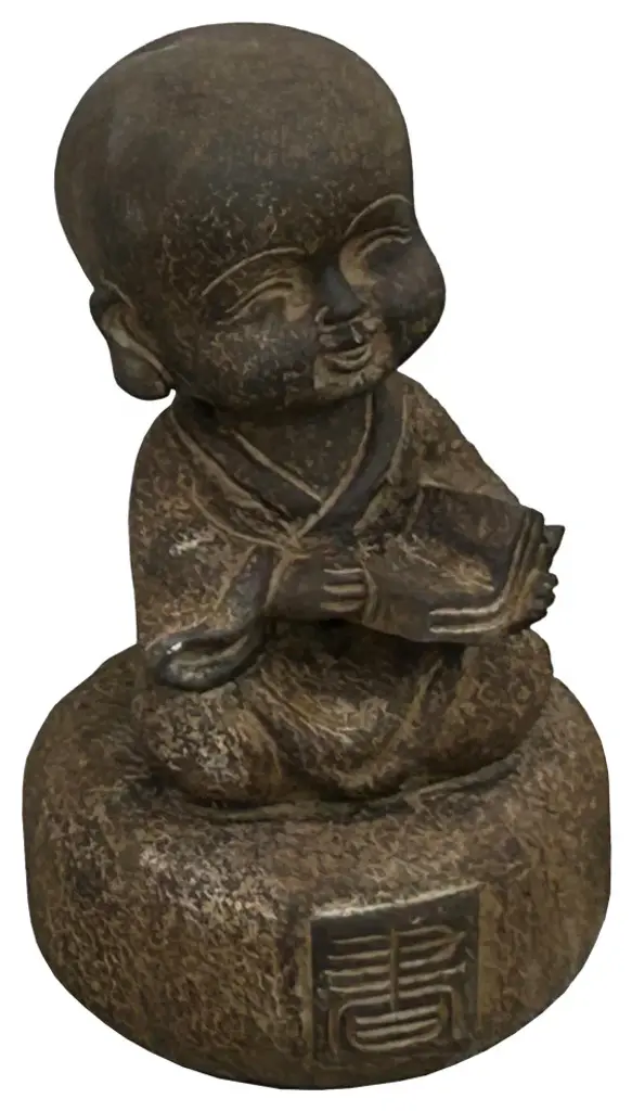 The Oriental Gray Stone Little Lohon Monk Reading Book Statue is a serene and captivating piece of artistry that exudes tranquility and wisdom. Crafted from high-quality gray stone, this statue depicts a small Lohon monk engrossed in reading a book. The intricate details of the statue capture the peaceful expression on the monk''s face as he immerses himself in the teachings within the pages of the book.Standing at approximately 14 inches tall, the statue commands attention with its finely sculpted features and lifelike representation. The flowing robes of the monk drape elegantly around his seated form, adding a sense of movement and grace to the piece. The stone finish lends a timeless and classical appeal to the statue, making it a perfect addition to any interior space.Whether placed on a meditation altar, a bookshelf, or a mantelpiece, the Oriental Gray Stone Little Lohon Monk Reading Book Statue serves as a reminder of the importance of knowledge, introspection, and inner peace in our lives. It embodies the spirit of quiet contemplation and serves as a source of inspiration for those who seek enlightenment and understanding in their journey through life.Dimensions: Dia 8"x h14"Origin: ChinaMaterial: StoneCondition: Natural stone marks, may have minor chip marks at the bottomFor all USA domestic continental customers (from 48 states), there is a flat shipping fee of $95, which includes insurance and handling charges. (Additional shipping charges apply to buyers from Hawaii, Alaska, US Islands, Florida Keywest, and Canada). If you are in the San Francisco Bay Area, we warmly encourage you to take advantage of our convenient in-store pick-up option at no extra cost. Please keep all original packing material and box if damage happens.