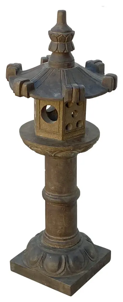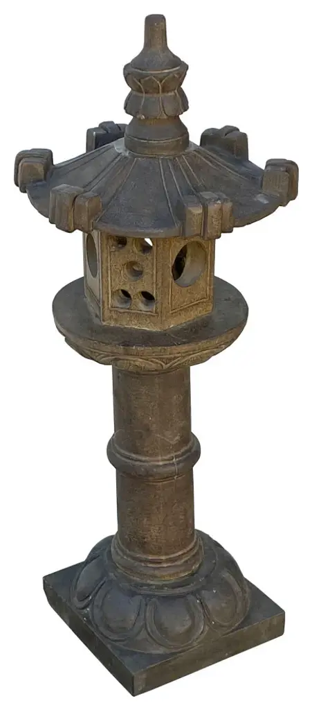 This is a garden stone lantern with a hexagon shape rooftop and simple gray marks stone body. It is a combination of 6 pieces. Dimensions: Dia 15"x h39"Origin: ChinaMaterial: StoneCondition: Vintage style finish, natural stone marks and minor chip mark at the edgeWork: Ship in 6 pieces US domestic continental buyer of 48 states pays $325 shipping charge for curbside delivery. Customer from Hawaii, Alaska, US Island, Florida Keywest, and Canada pays extra shipping cost. Insurance and handling charge are already included in the shipping cost. When your shipment is delivered, carefully inspect the outside of the packaging before the delivery personnel leave. It is important to clearly indicate if there is any visible damage to the packaging or items on the delivery paperwork. Carriers usually do not honor concealed damage claims so it is crucial to clearly indicate any visible damage to the packaging or items on the delivery paperwork.