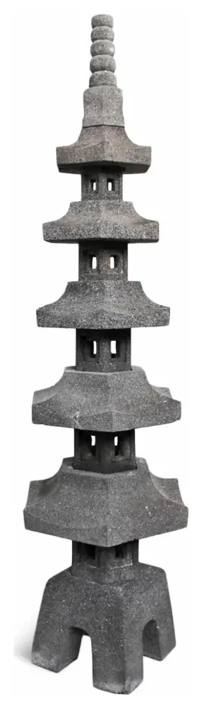 Oriental Zen Gray Stone Hexagon Tower Garden Lantern Statue Hcs7095