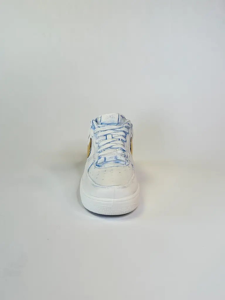 Original Pop Art Blue Washed Porcelain Air Force 1 Sneaker Sculpture With Gold Check By Brock Deboer