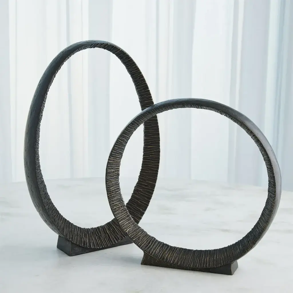 The Orion Sculptures, available in both round and oval shapes, are meticulously crafted from cast brass with a lustrous bronze finish. These sculptures captivate with their graceful forms, adding a touch of timeless elegance to any space. From a fashion forward perspective, Global Views offers accessories, furniture, statement lighting, and an assortment of rugs and mirrors to add beauty and joy to your home.