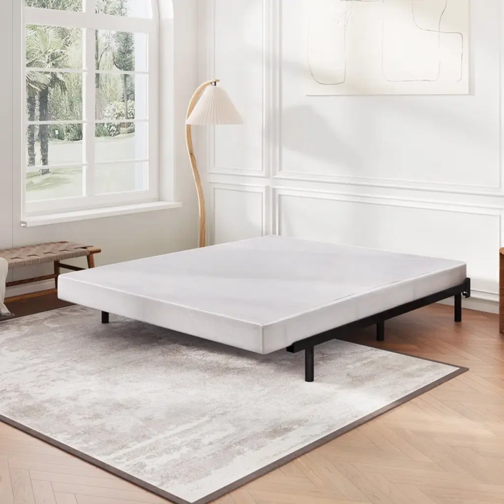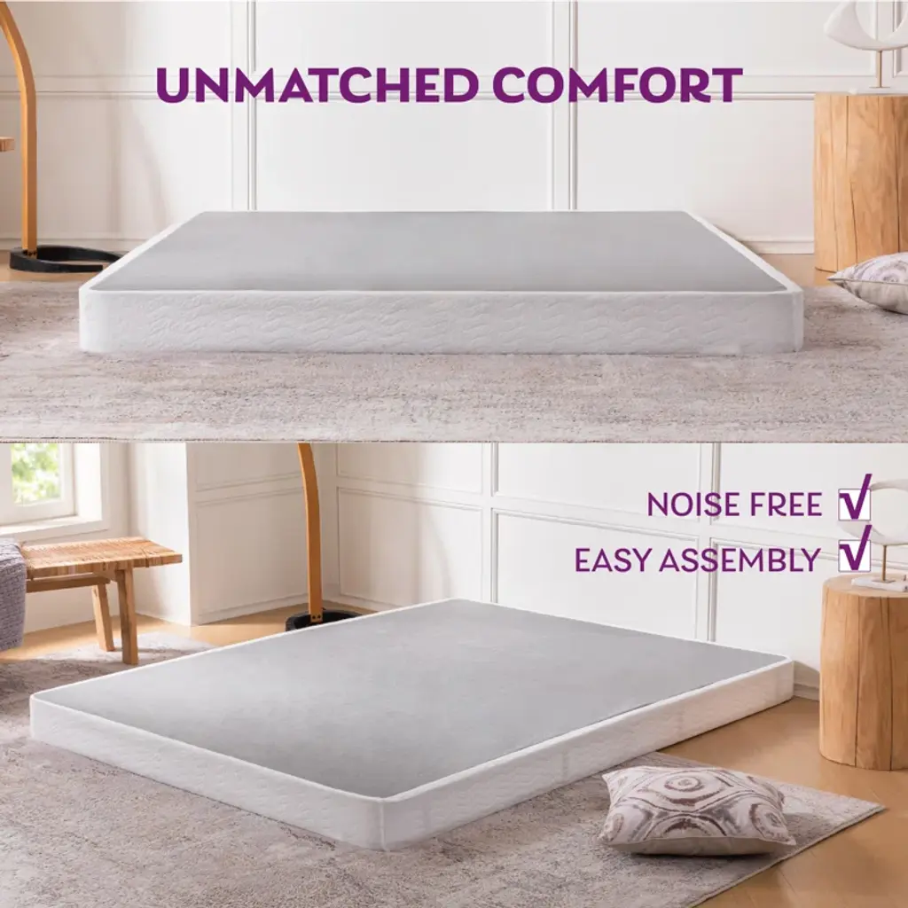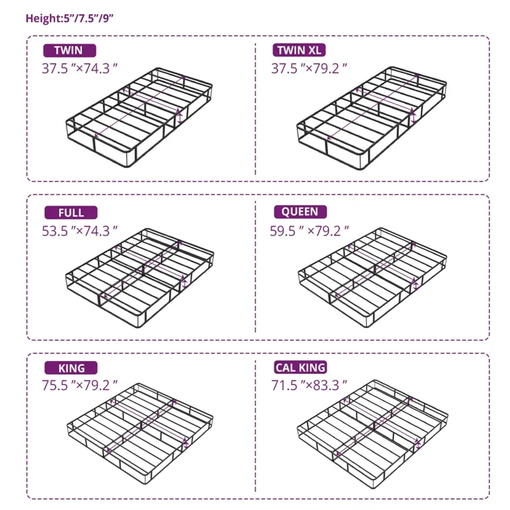 Say hello to sweet dreams with this sturdy metal box spring. Crafted from robust steel, it's all about durability and stability for your mattress. It comes with a chic polyester cover that not only adds an elegant touch but also features non-slip and elastic straps for easy use. Whether you're decking out a dorm room or sprucing up the master suite, this box spring is here to help. Plus, it's a breeze to put together. Sweet dreams, indeed.