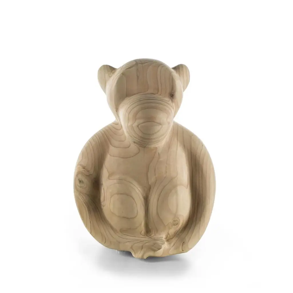Solid wood accessory in scented Cedar made from one single block of wood, with a sculptural design inspired by a funny little monkey. Available in three sizes: big, medium and small