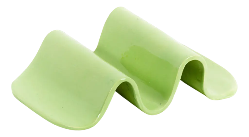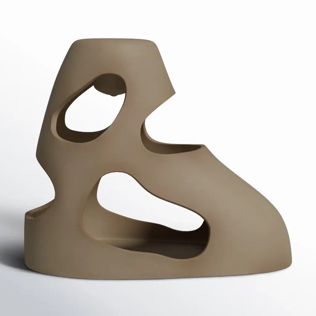 Oscillation Decorative Object in Red Glazed Ceramic by Ain ChoiDimensions: D 18 x W 46 x H 54 cm.Materials: Ceramic.Waves are particularly fascinating to me among those topics. A wave refers to the vibration originating from a part of space or matter, spreading outwards into the surroundings over time. This encompasses natural phenomena ranging from the waves of the ocean, sound, and light to the particles composing matter. In quantum mechanics and modern physics, there has long been an attempt to describe and explain observed phenomena either as particles or waves. Quantum physicist Kwon Park has stated, 'Everything is a wave. Strictly speaking, everything is both a wave and a particle. Thus, the concept of waves is emphasized as crucial.French mathematical physicist Jean-Baptiste Joseph Fourier (1768~1830) argued that no matter how complex a wave may be, if it exhibits periodicity, it can be represented as a collection of various curves. Additionally, pioneering abstract artist Wassily Kandinsky, recognized as a major figure in early abstract art, viewed "lines forming waves" as coinciding with the forms of all curves, perceiving them as an assembly of diverse curves. Both a mathematical physicist and an artist presented the same interpretation. However, this might not be so surprising. Mathematics and art have long interacted in various forms, showing that not only visually distinct elements such as form, space, and sculpture but also motion and changes in form can be created using mathematical principles. This fact served as a source of inspiration for me, leading me to interpret abstract mathematical concepts artistically and strive to visualize them.From a mathematical perspective, I aim to materialize waves through soil. Waves only become distinctly apparent through equations and coordinates, and a visualized wave is defined as a waveform, allowing intuitive assessment of amplitude and frequency as depicted by lines. This choice is rooted in the geometry of circles and the resulting sinusoidal curves, which led to the selection of a cylindrical form as the base. By applying a combination method involving transformation, intersection, combination, and deletion, while substituting into the concepts of the X, Y, and Z axes after unit form transformation, I construct a multi-layered structure revealing the interior. Consequently, dividing my inner and outer spaces, delineating each intersection of lines and planes, I depict dynamic waveforms, representing the periodic repetition, the most crucial property of waves, I hope to find a connection between nature and mathematics in the process of structures built up with soil undergoing physical and chemical changes, aiming to blend the logic of mathematics with the sensibilities of art in reality, and to derive new meanings.