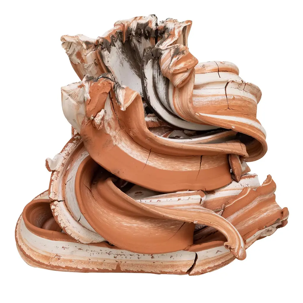 This unique Osmunda sculpture, inspired by the "Osmunda regalis" fern, is handcrafted using ancient techniques. Its design unfolds like a narrative, where the act of creation reveals intricate details over time. The clay cords become a textured surface, echoing ancient forms from the Paleolithic era. Crafted on the edge of emptiness, it symbolizes absence and cosmic cycles. The sculpture embodies a contemporary temple-like structure. It includes a certificate of authenticity.