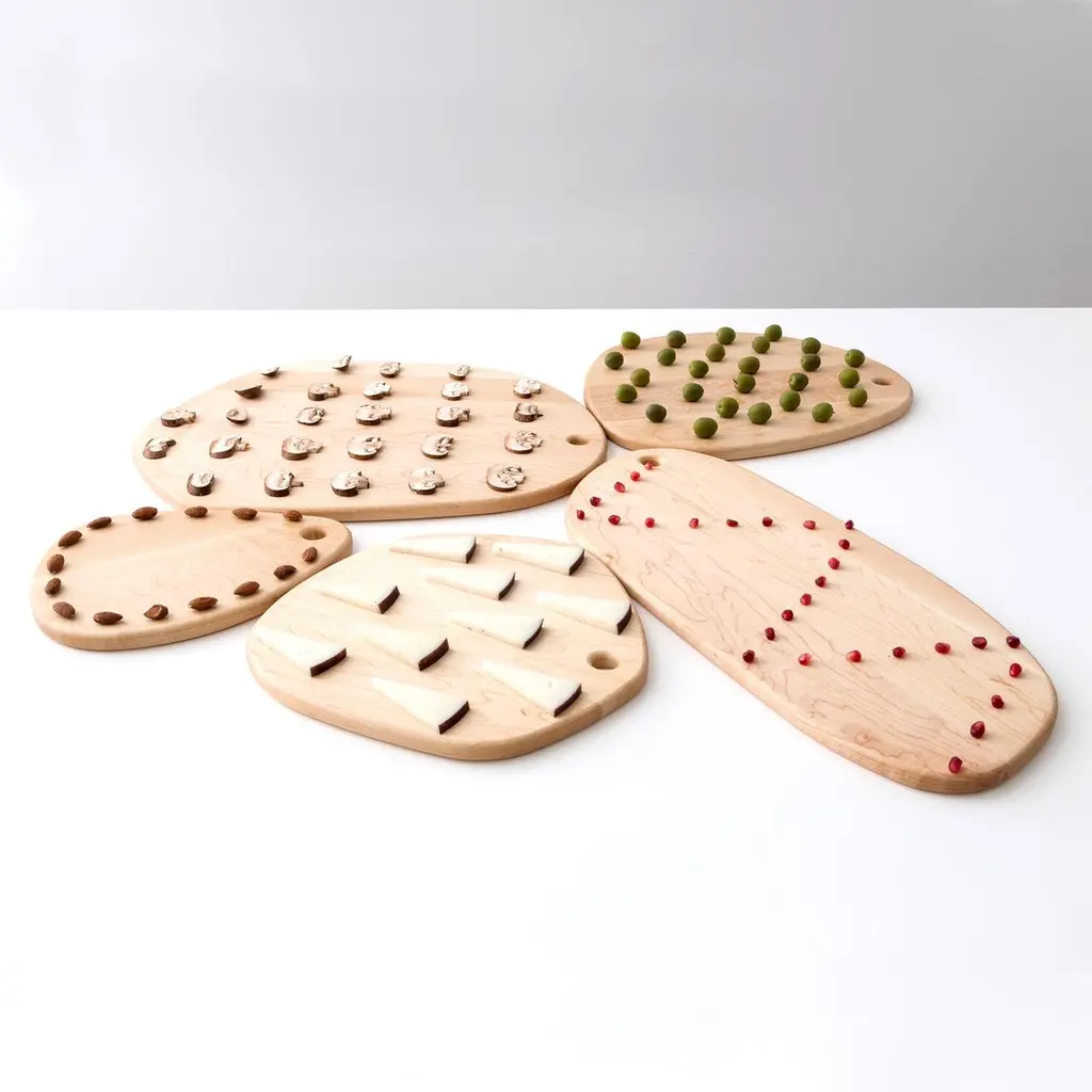 Inspired by smoothed over, water-worn rocks, Noah Spencer's pebble cutting boards are a study in organic form. Whether hung on a wall in multiples to create a mosaic or piled on a counter to make a cairn, these useable sculptures will add artful beauty to your home.Handmade in Brooklyn by Noah Spencer