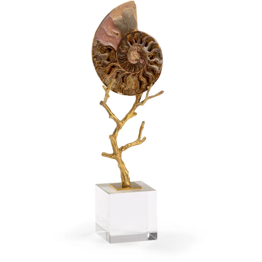 Cast From Natural Oyster Shells These Sculptures Feature An Aged Ivory Finish With Chrome Accents And Set Atop Staggered Height Crystal Cube Bases. Sizes: Sm-5x11x3, Lg-5x15x3