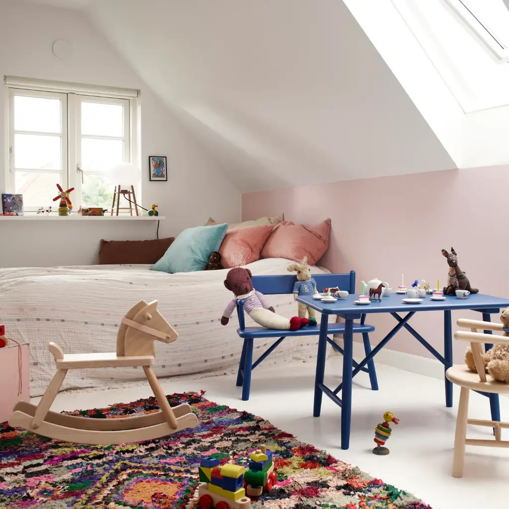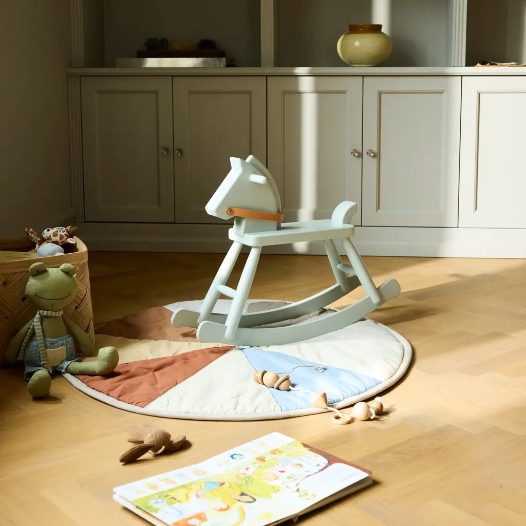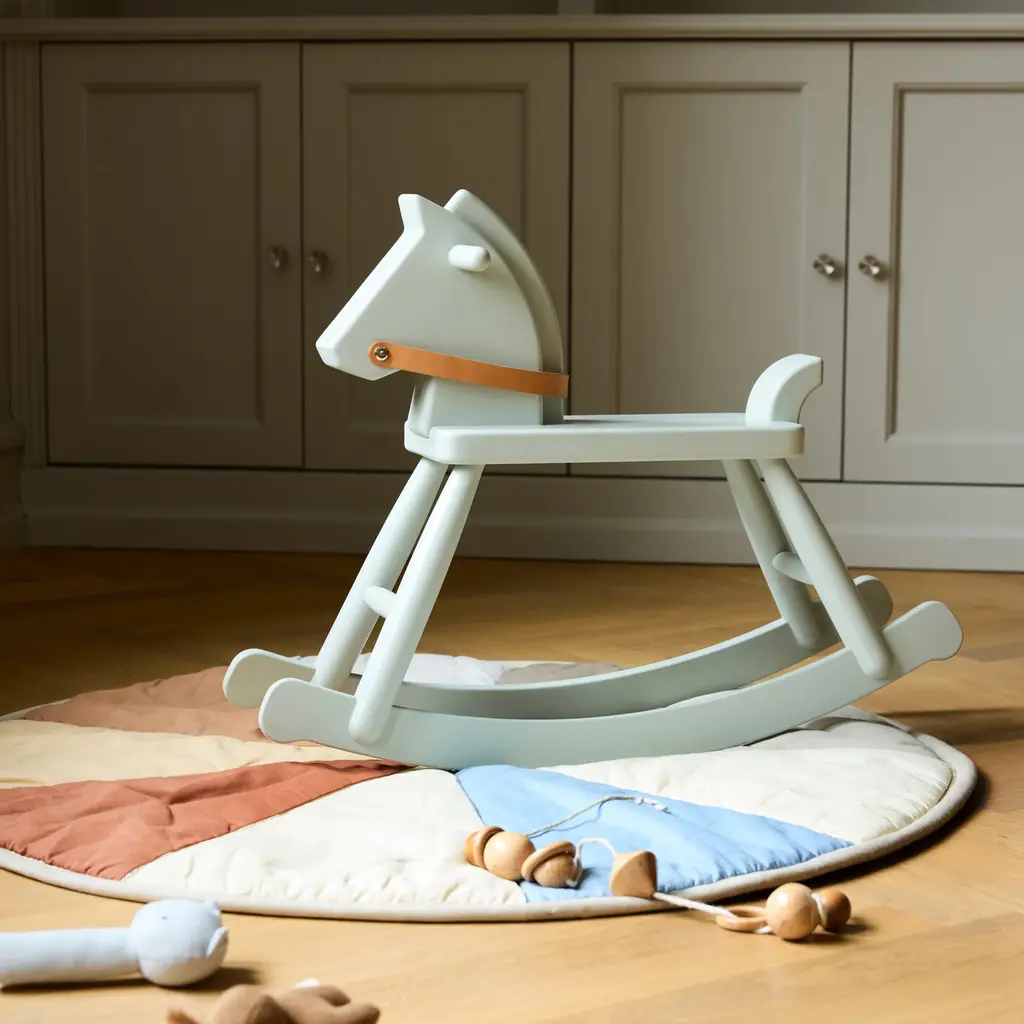 The P12 Children's Rocking Horse, designed by Sarah Moutouh for FDB Mobler, blends timeless charm with refined craftsmanship. Inspired by the knight chess piece, it captures a simple yet iconic horse silhouette, perfectly suited for a child’s room. Crafted with grain leather reins that develop a beautiful patina over time, this rocking horse honors Børge Mogensen’s legacy while offering a sophisticated and playful addition to children’s furniture. Highlights