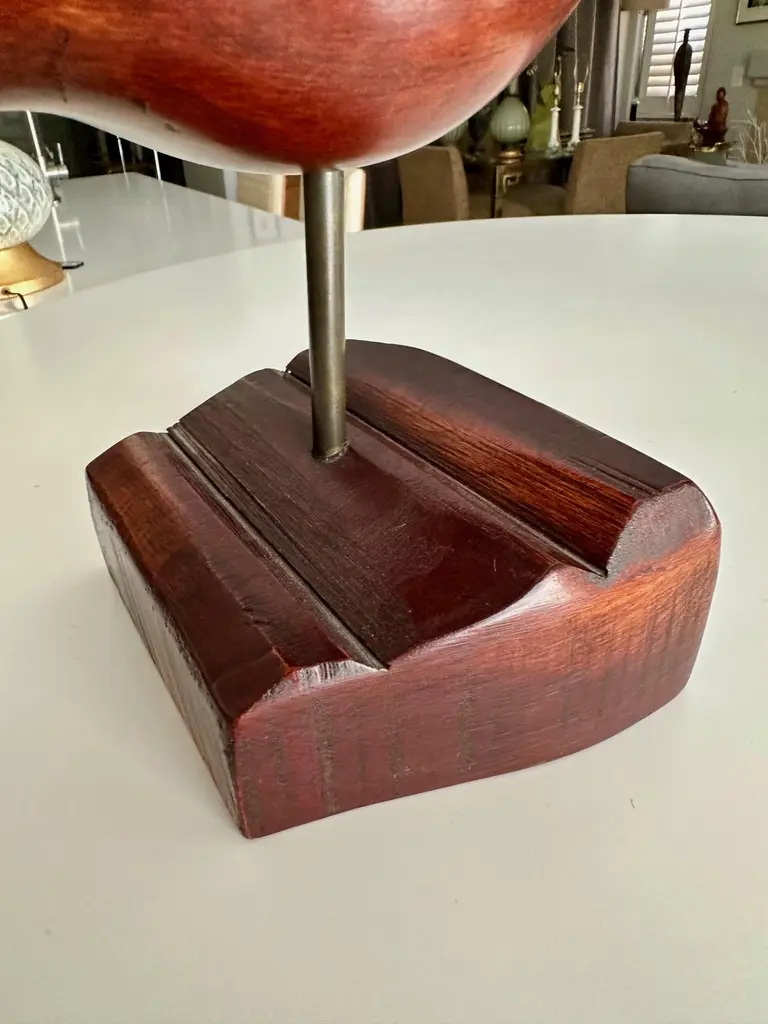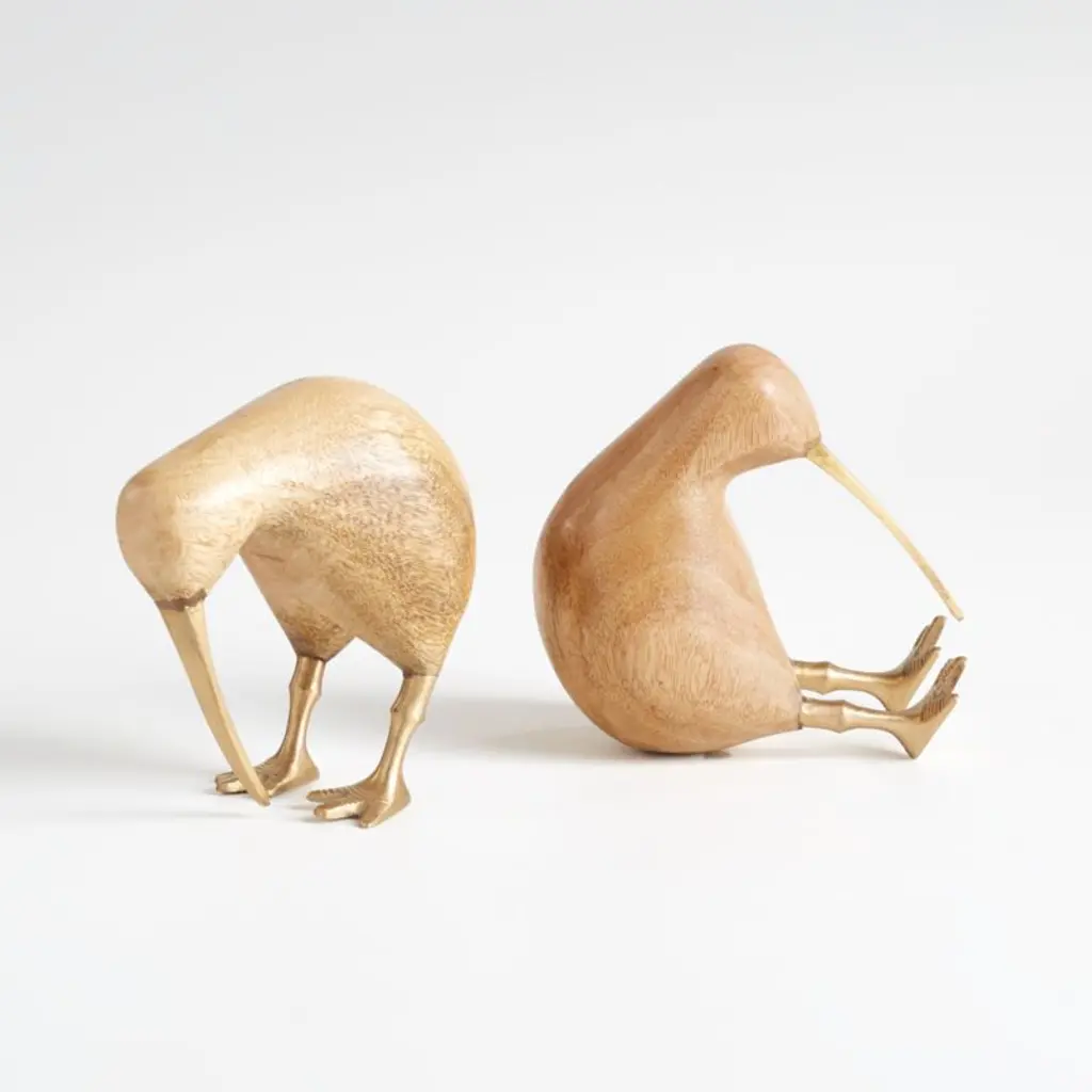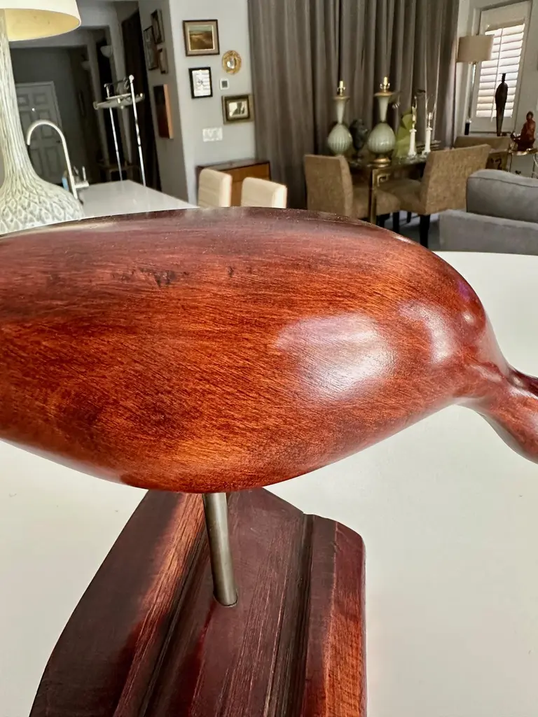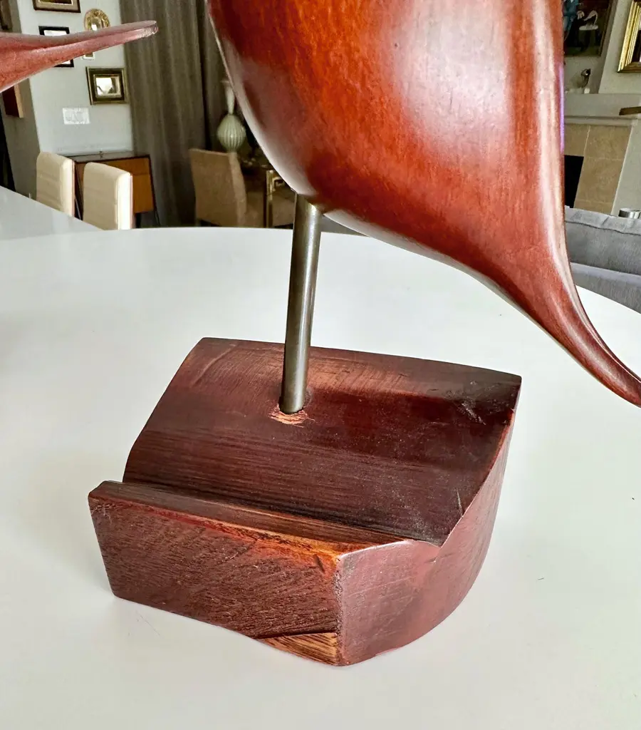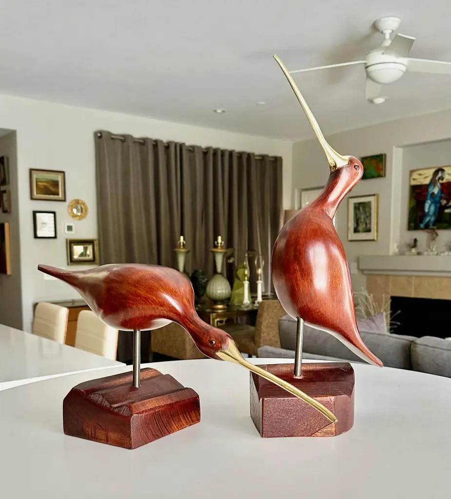 Pair Midcentury Modernist Carved Wooden And Brass Bird Sculptures