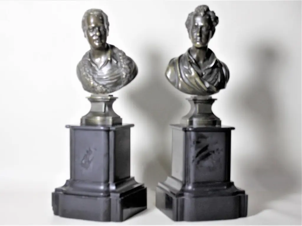 Pair Of Antique Bronze Statues Of Poets Robert Burns & Walter Scott