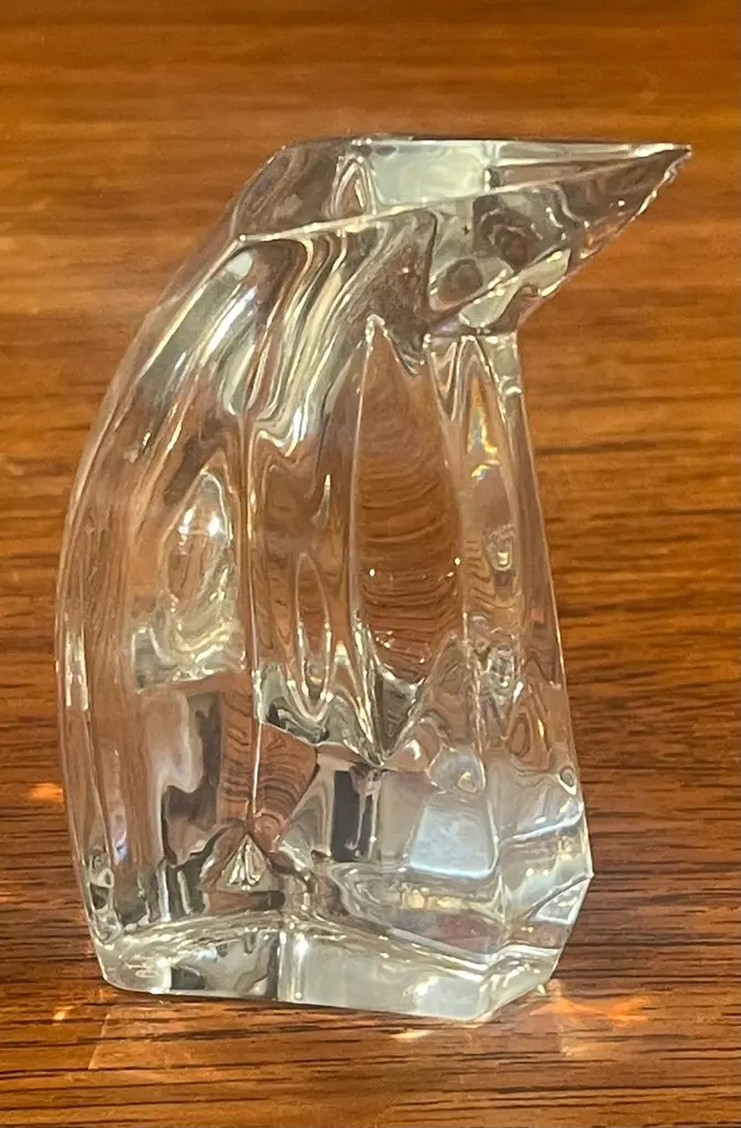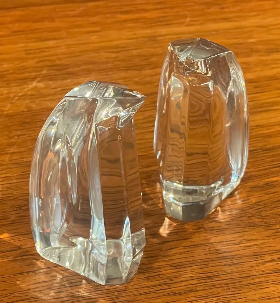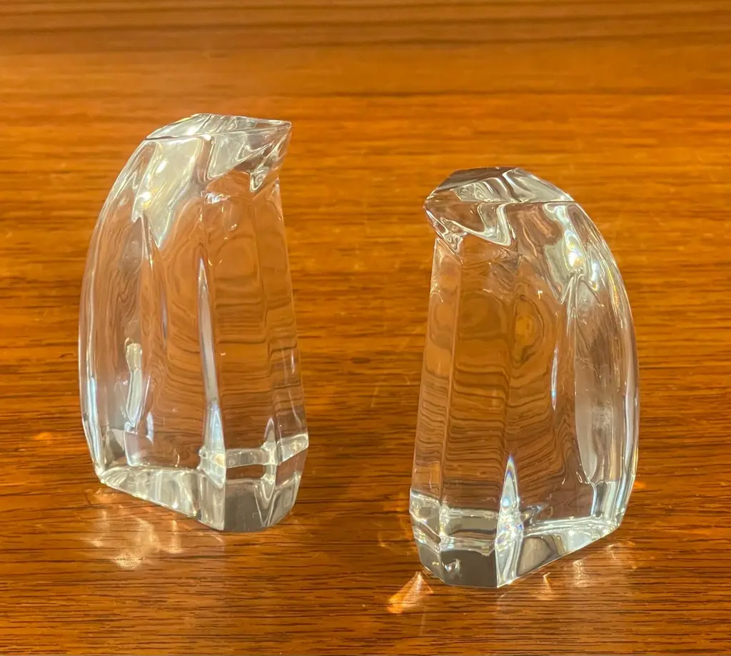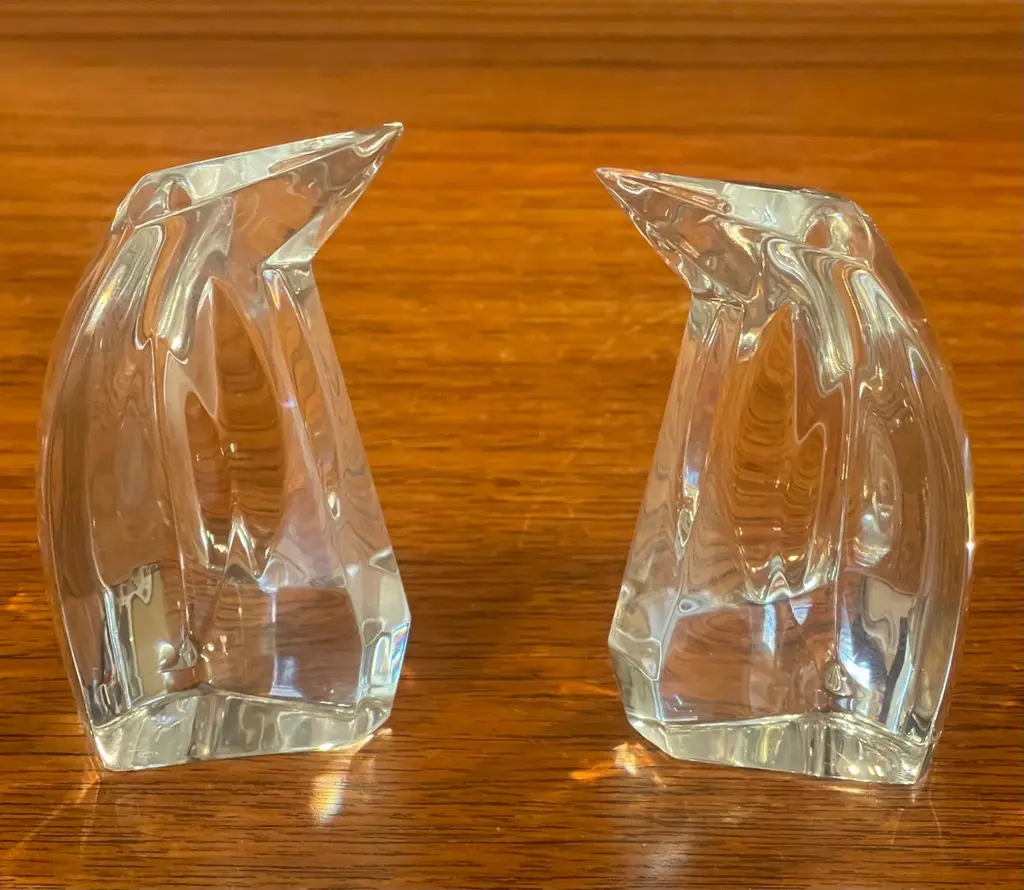 Pair Of Crystal Stylized Penguin Sculptures By Val St. Lambert