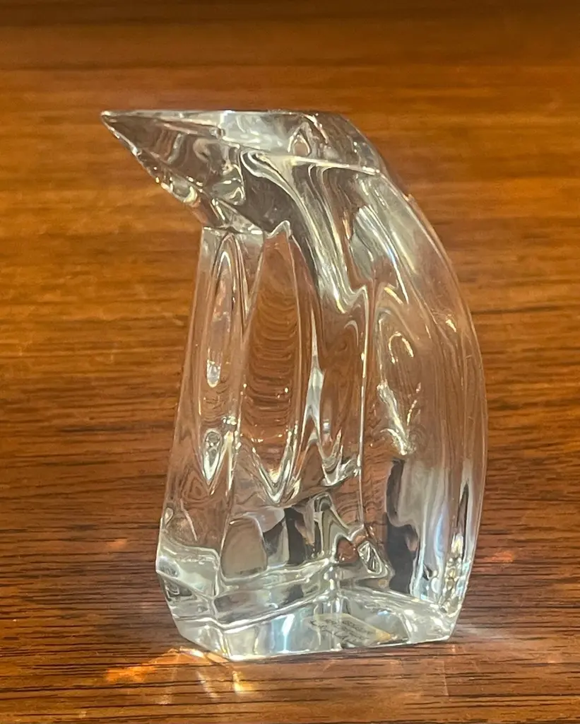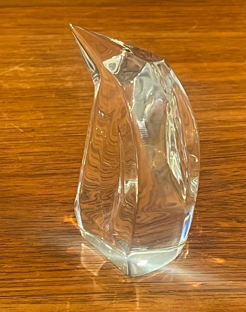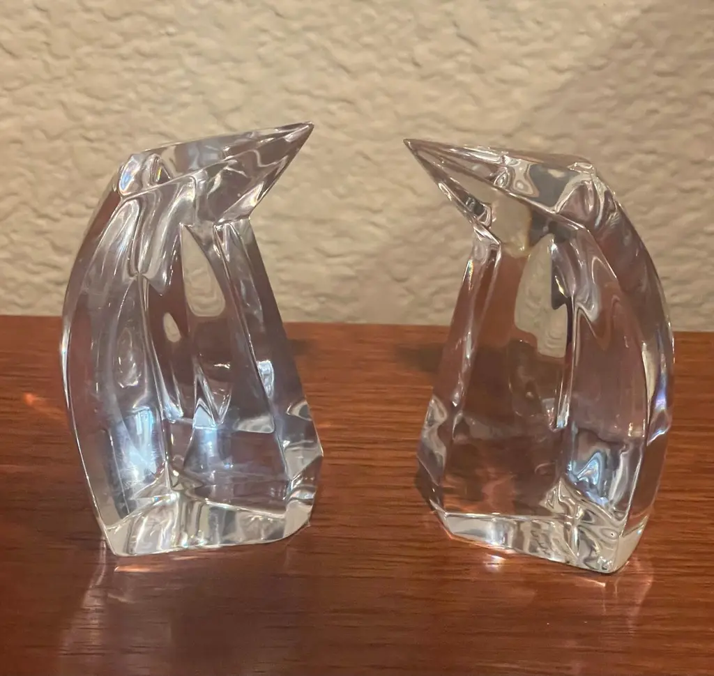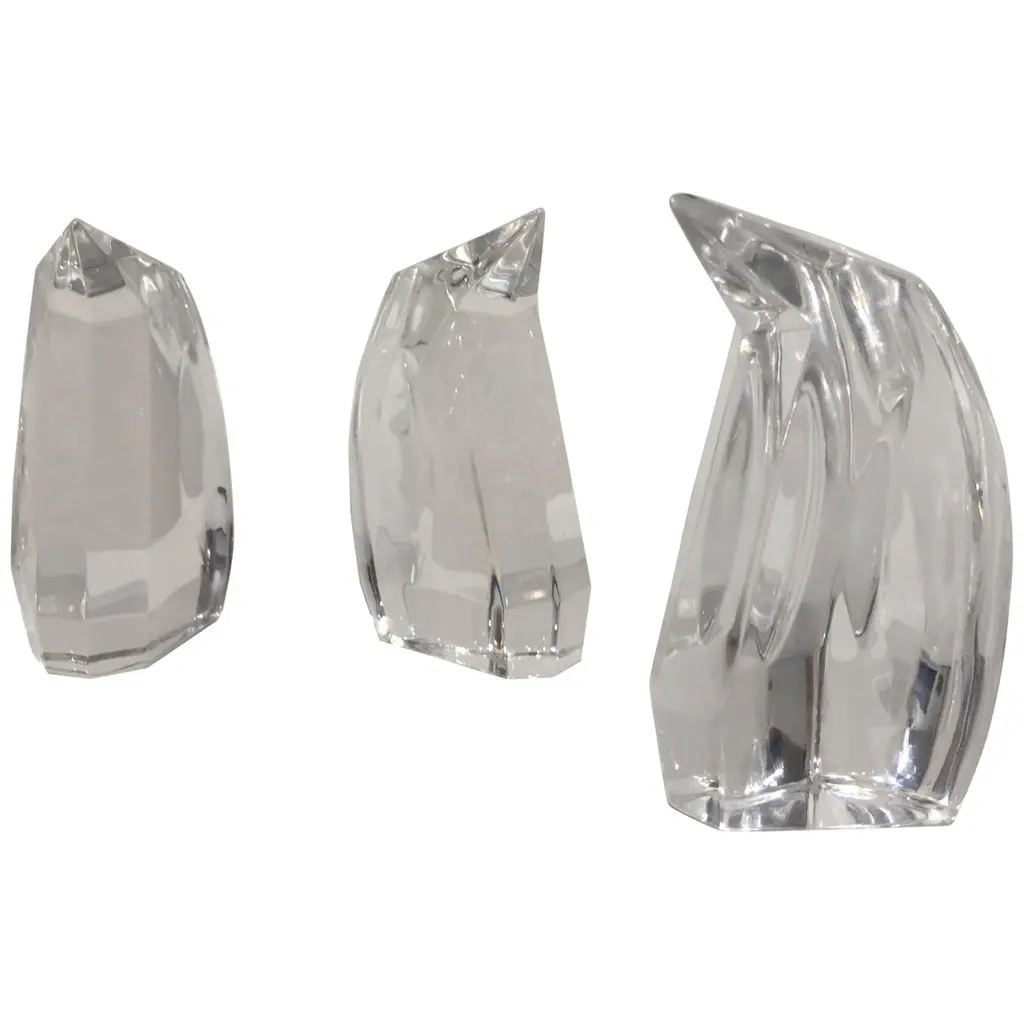 Pair Of Crystal Stylized Penguin Sculptures By Val St. Lambert