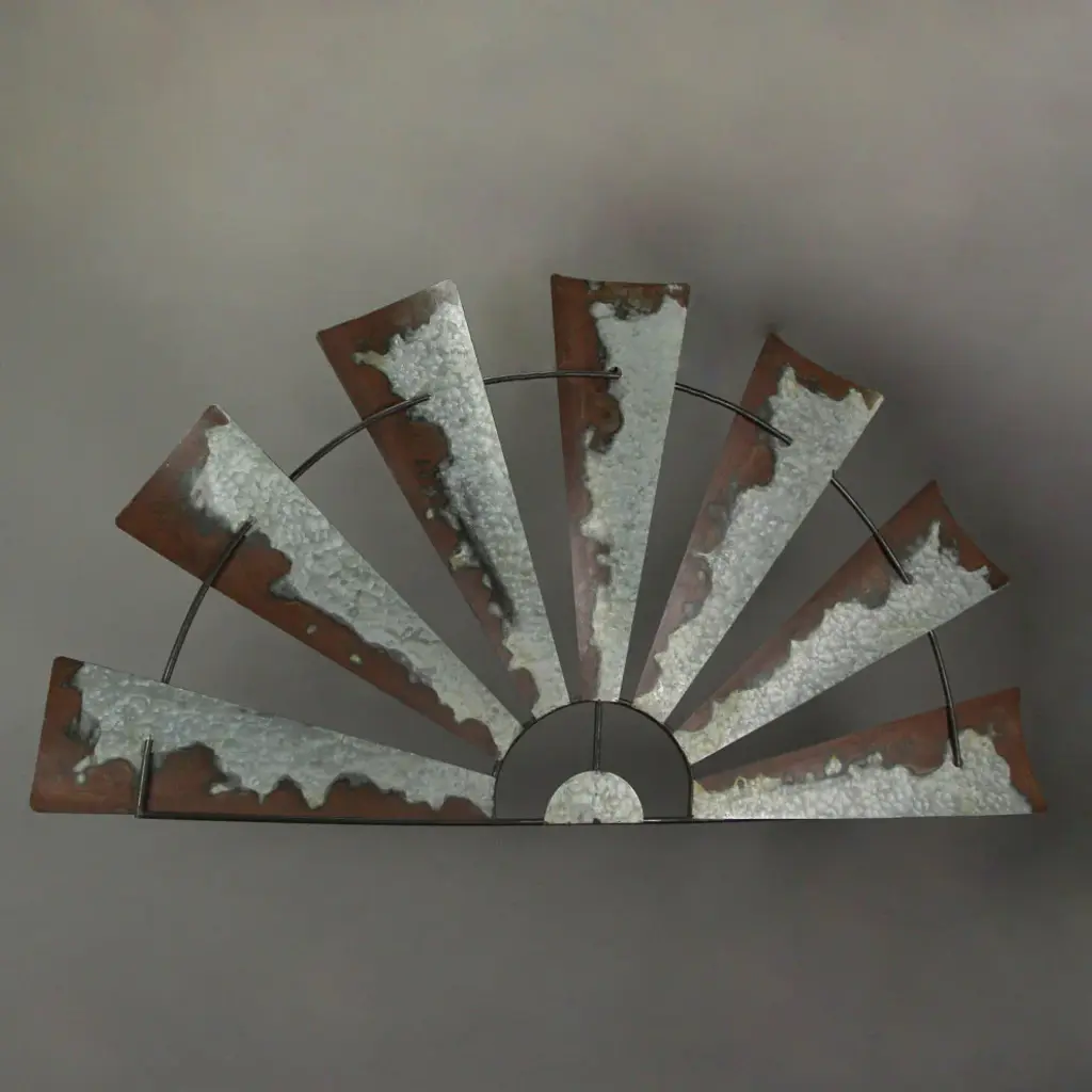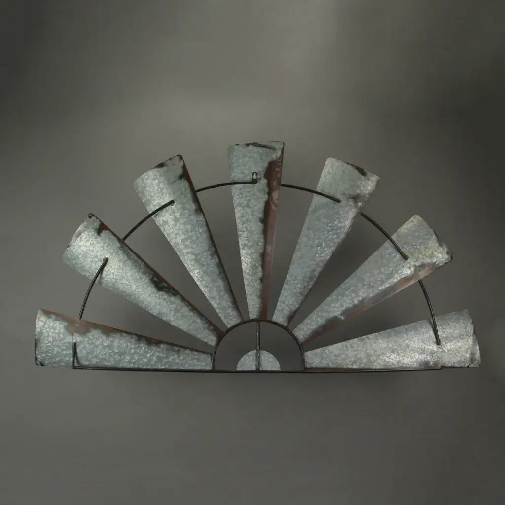 Generous Size - Each piece measures 47.5 inches long, 0.25 inches wide, and stands at 24 inches high, making a bold statement.Artistic Craftsmanship - Crafted from galvanized metal, these pieces showcase a creative half-windmill design, adding a unique touch to your decor.Rustic Charm - The distressed silver/grey vintage finish, complemented by faux rust and a simple metal wire frame, exudes an authentic rustic vibe.Versatile Placement - Ideal for individual display above mantels, windows, doors, or artworks. They can also be showcased as a harmonious pair, adding charm to any space.Home Harmony - Perfect for rustic, country, or farmhouse-inspired interiors, these pieces are the ideal decorative addition to living rooms, kitchens, or bedrooms.Elevate your home''s ambiance with this set of classic farmhouse windmill-inspired metal wall art pieces. These twin half windmill decorations are incredibly versatile, making them ideal for various spaces such as mantels, doors, windows, or even as standalone pieces. Crafted from galvanized metal, these art pieces feature a distressed silver finish with faux rusting, exuding a weathered rustic charm that complements any decor style. Measuring 47.5 inches long and 24 inches high, these wall art sculptures make a striking statement on any wall. Whether displayed individually or as a pair, they add a touch of vintage allure to your space. Get creative with your decor by embellishing them with string lights and greenery, or simply let them lean against a wall in a low-traffic area. These pieces don''t just enhance your decor; they also reflect your personal style. Their adaptability allows you to experiment with different placements, making them a fun and stylish addition to your home. Let your imagination roam free as you transform your living space with these charming farmhouse windmill-inspired metal wall art pieces.