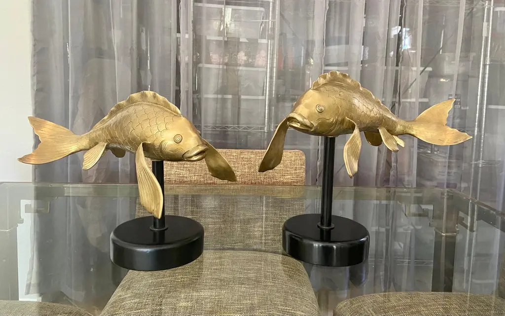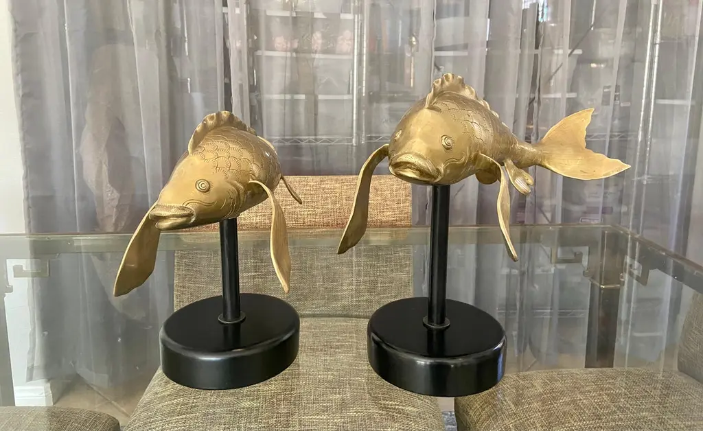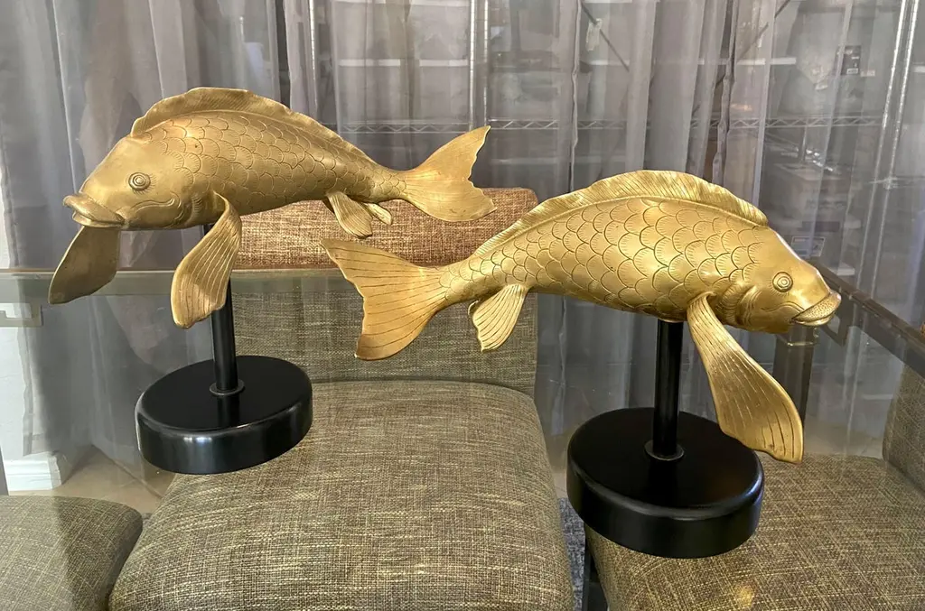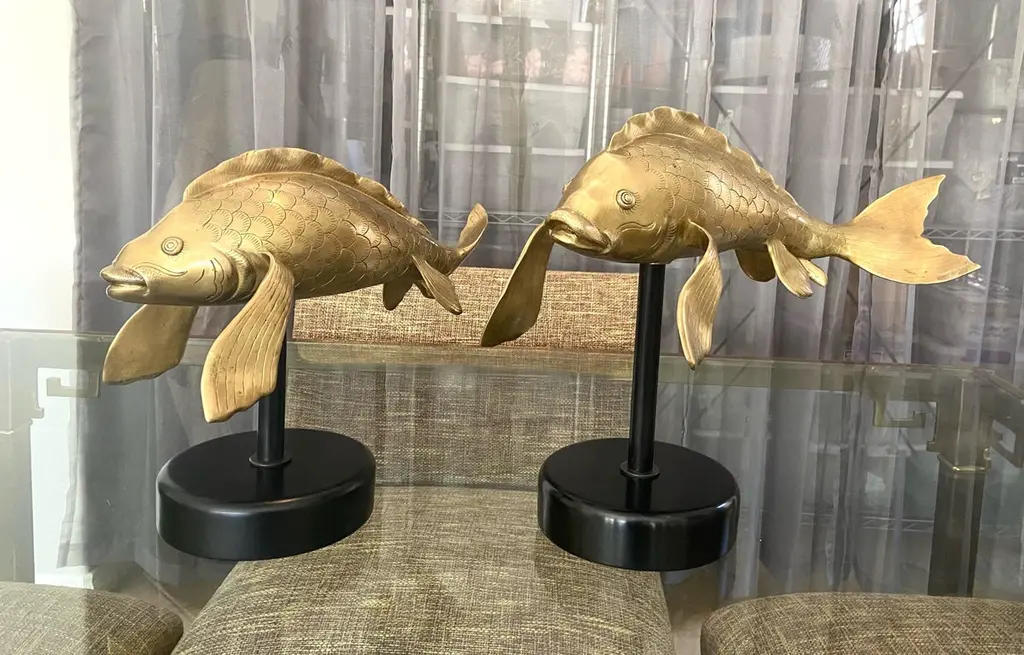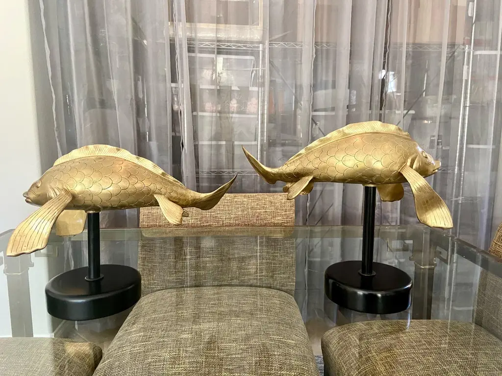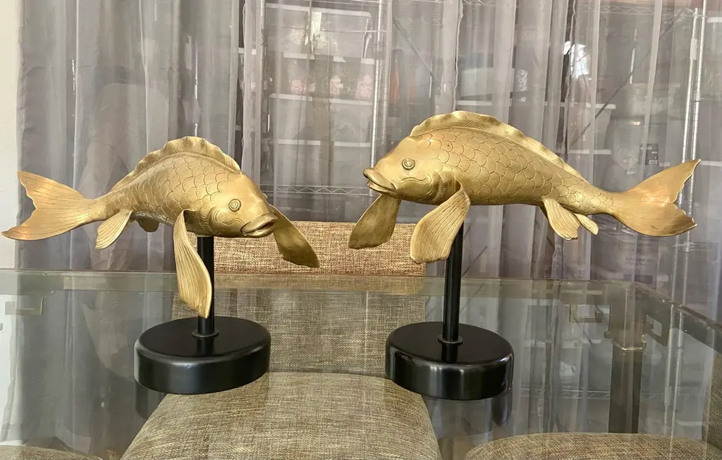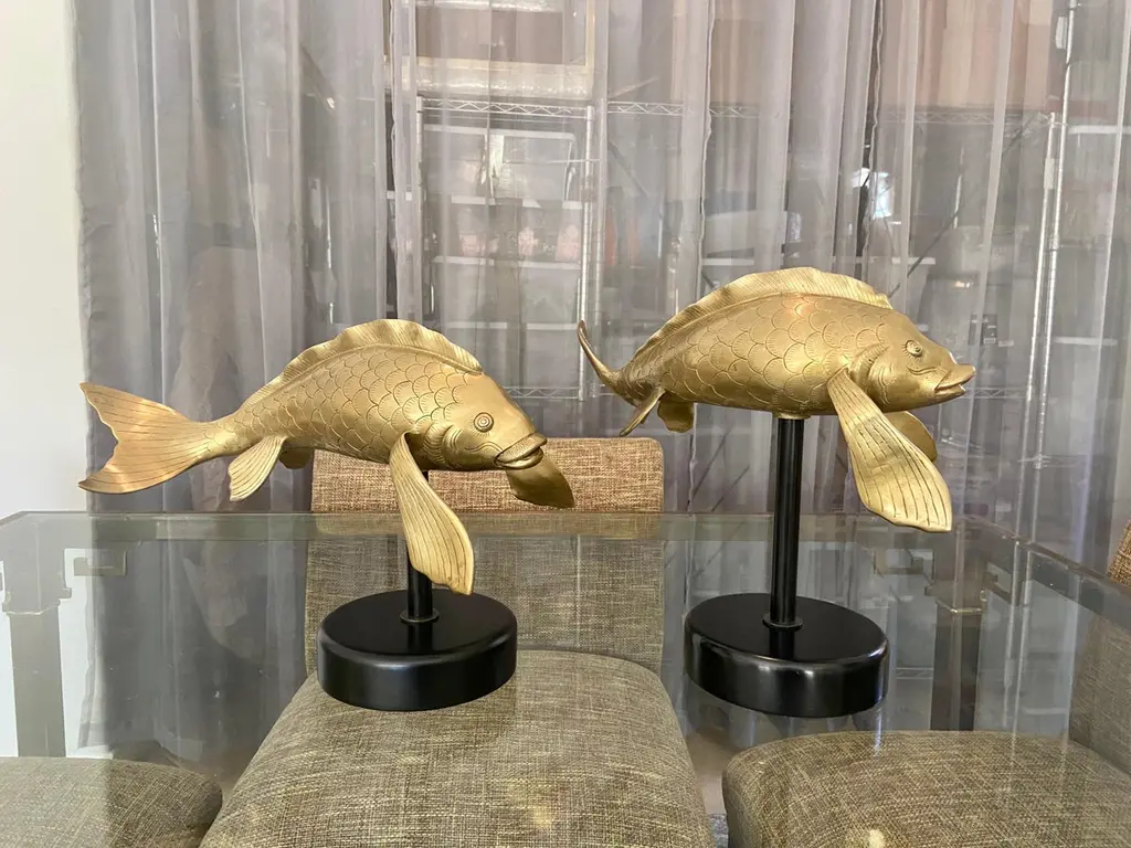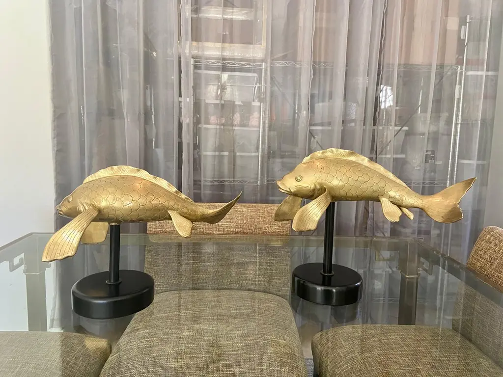 Pair Of Large Brass Koi Fish Figural Sculptures