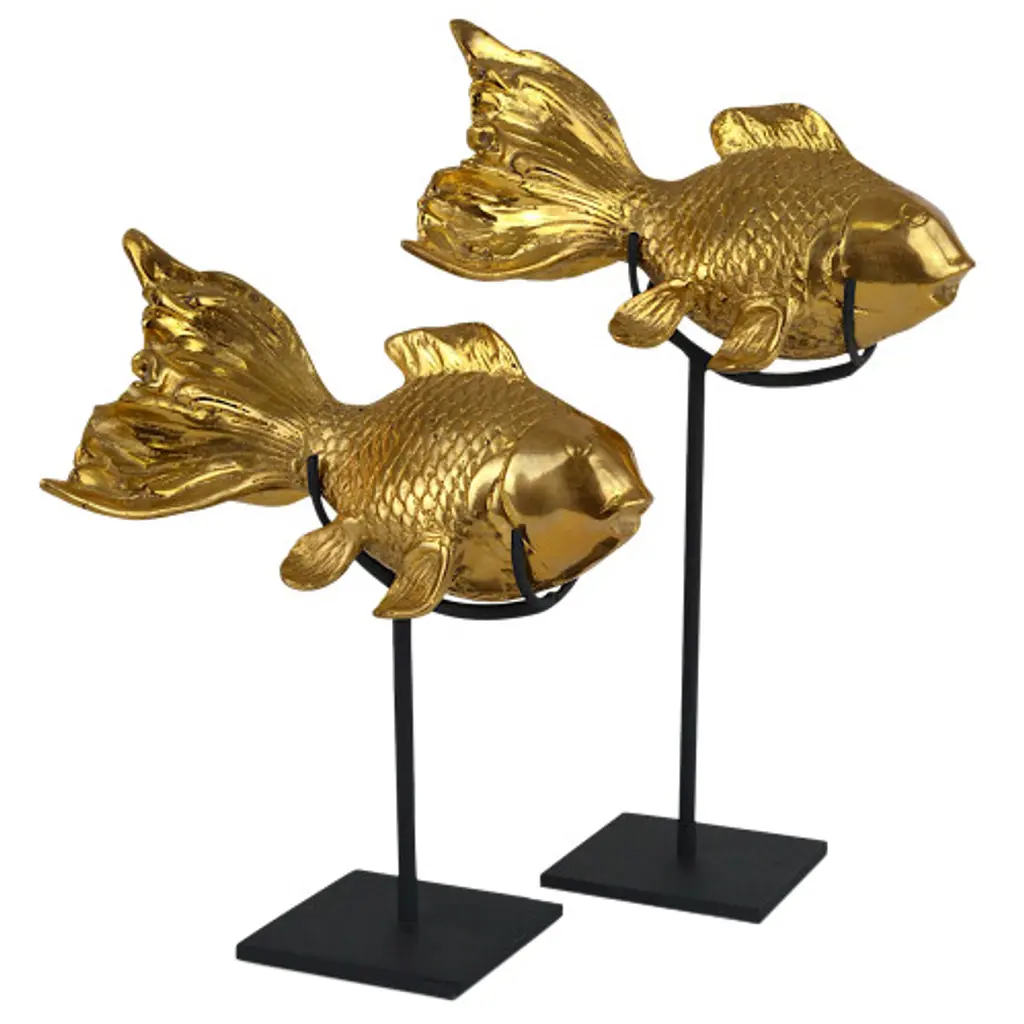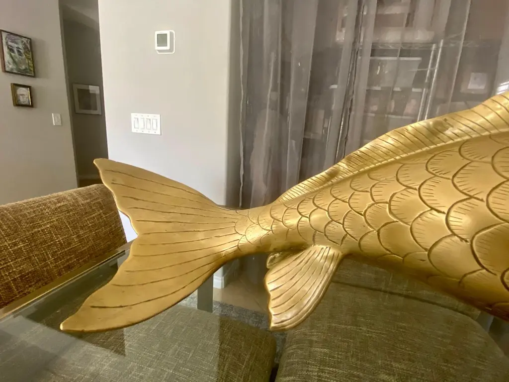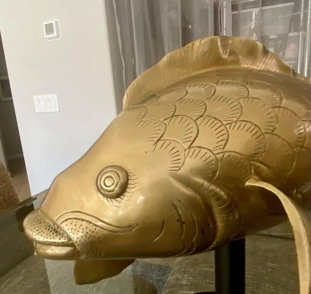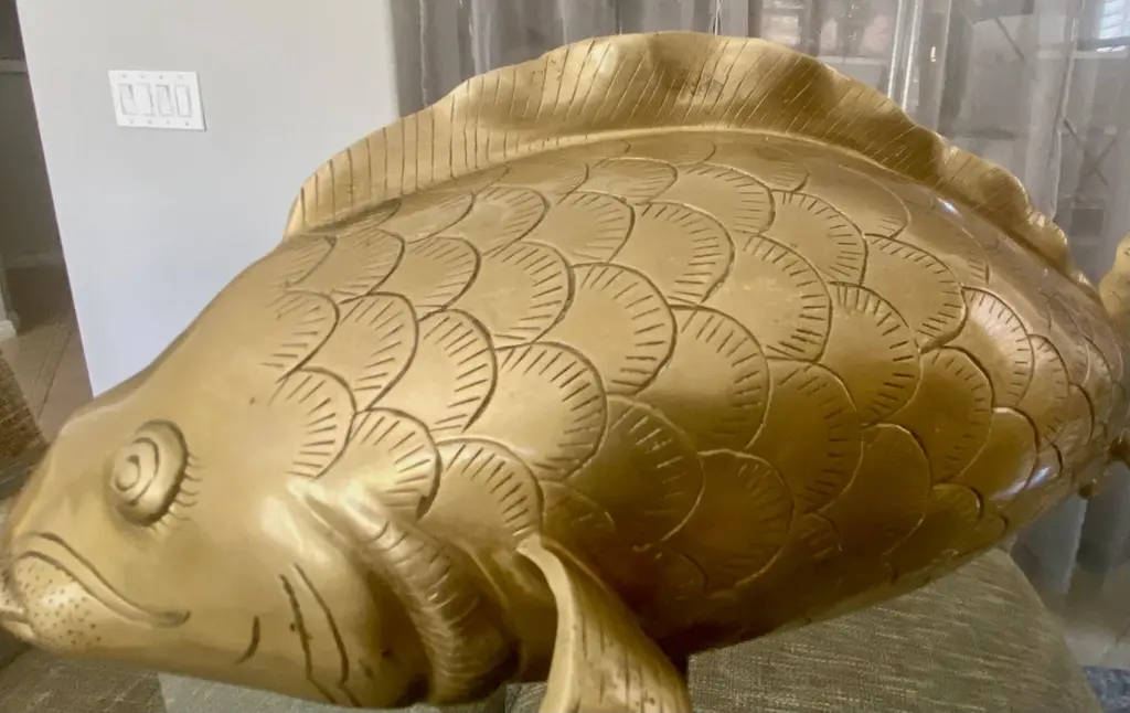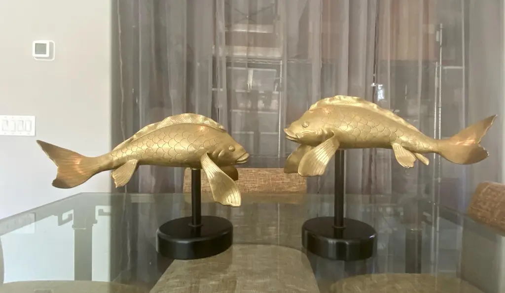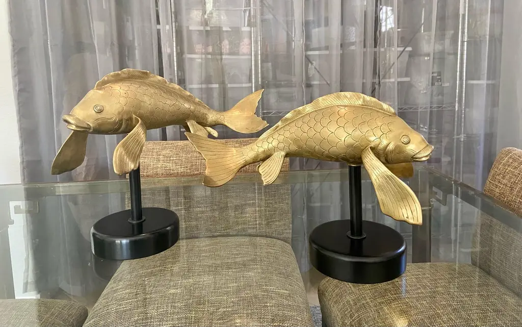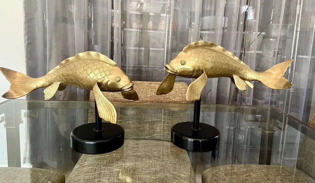 Pair Of Large Brass Koi Fish Figural Sculptures