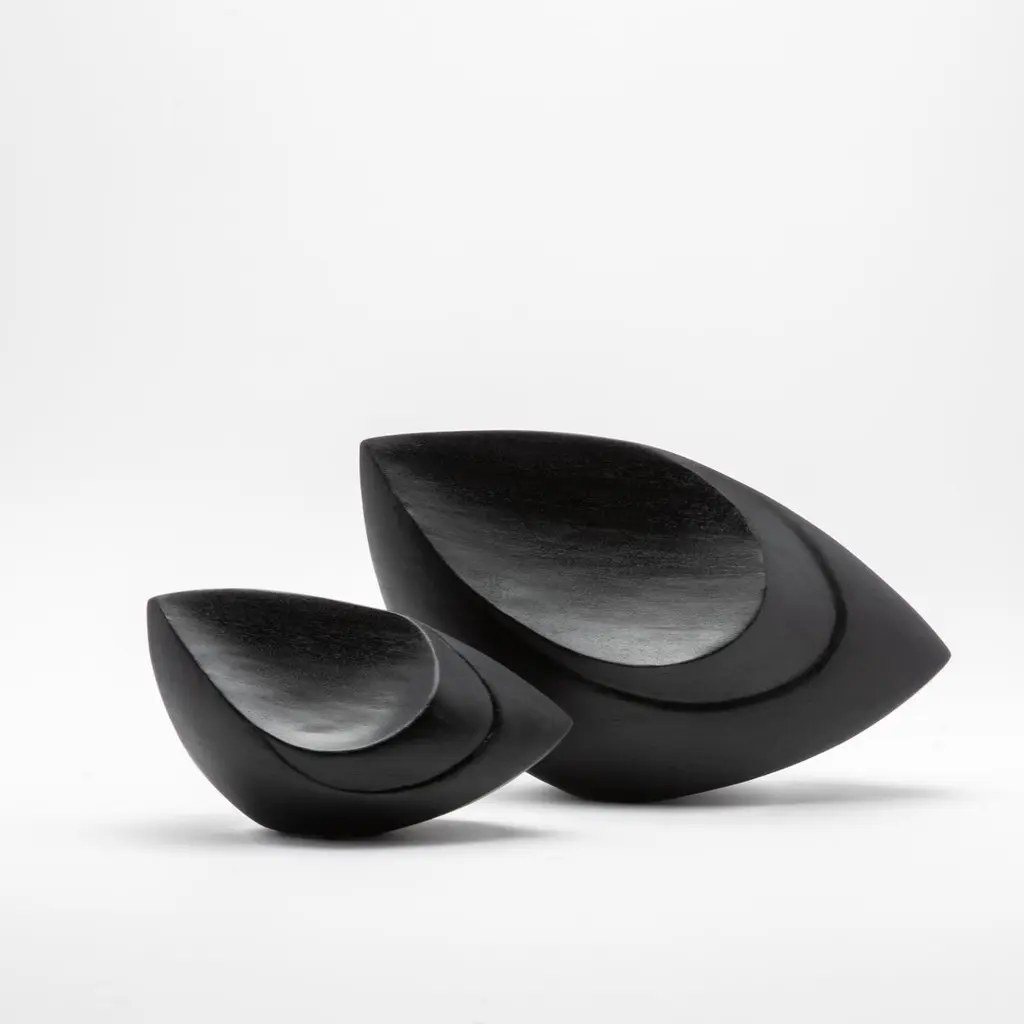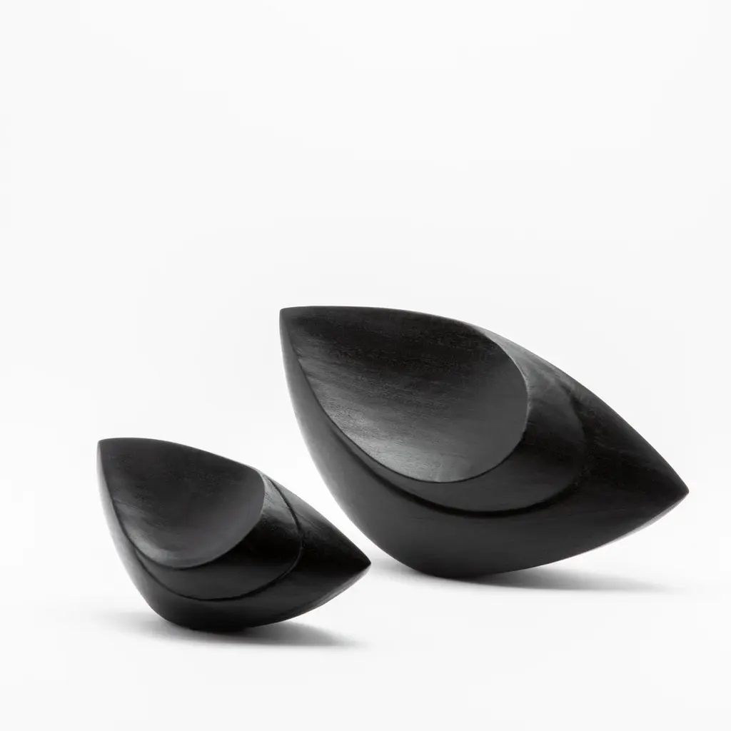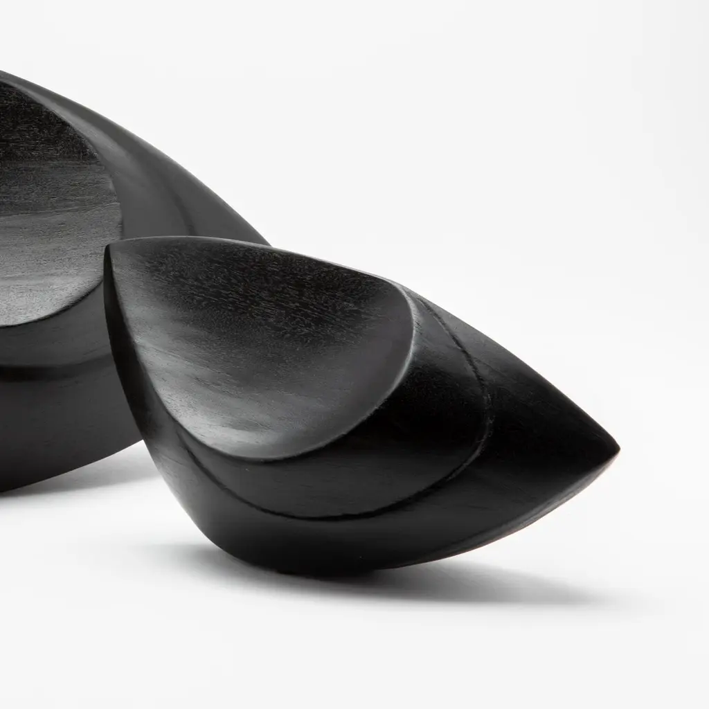The "Birds Eye" sculptures by Patrick Coard Paris are an embodiment of modern abstract elegance. Expertly crafted from a luxurious black oak veneer inlaid on a fiberglass core, these hand-carved pieces boast a sleek, matte finish that accentuates their bold, fluid forms. The sculptures' design captures the essence of movement and grace, making them a striking statement in any setting. Their minimalist yet impactful presence is perfect for those who appreciate the beauty of simplicity combined with the artistry of handcrafted excellence. Each piece is meticulously hand-painted, ensuring a unique, one-of-a-kind creation that exudes sophistication and timeless style.SMALL: 10.43” X 4.72” X 5.31”MEDIUM: 6.89” X 15.74” X 8.78”The sculptures can be also purchased separately. Please contact us through the 1stDibs messaging center. This sculpture was exclusively made for Mogul and is on display in our LA showroom.This sculpture is made for indoor use only.About the artist:Patrick Coard, a designer with Danish and Irish roots, began his artistic journey in Paris, where he first gained acclaim for his exquisite candle designs. Now based in Manila, Philippines, Patrick has expanded his craft into the realm of sculptural art, creating luxurious pieces that seamlessly blend design with deep emotional resonance.Each of Patrick’s sculptures is a testament to his dedication to craftsmanship. They are meticulously handcrafted by skilled artisans in the Philippines, combining natural materials with specialized techniques to achieve a unique, tactile beauty. The hand-painted finishes ensure that no two pieces are alike, making each sculpture a singular expression of refined artistry.Drawing inspiration from the sculptors of the 1930s and 1940s, Patrick’s modern collection radiates both relaxation and sophistication. His sculptures go beyond decoration; they connect with the human spirit, transforming any space into a sanctuary of elegance and peace. Patrick Coard’s creations are timeless treasures, embodying luxury and elevating the essence of any interior.