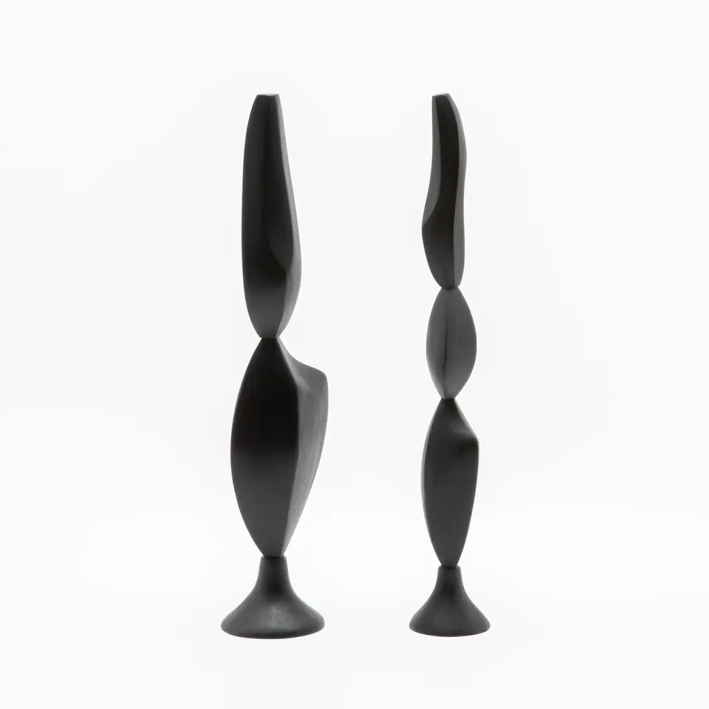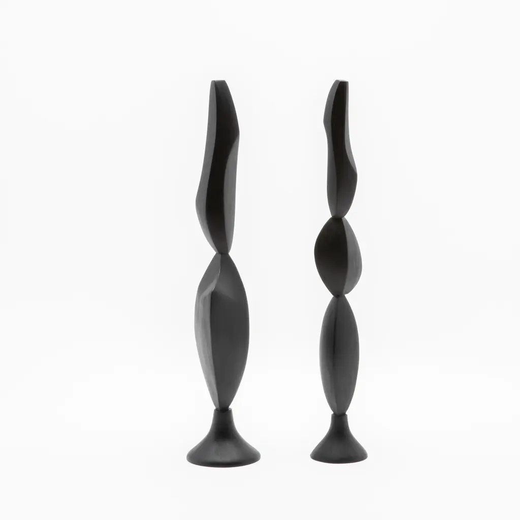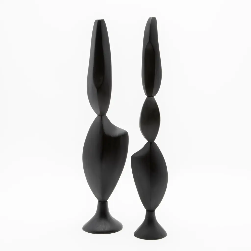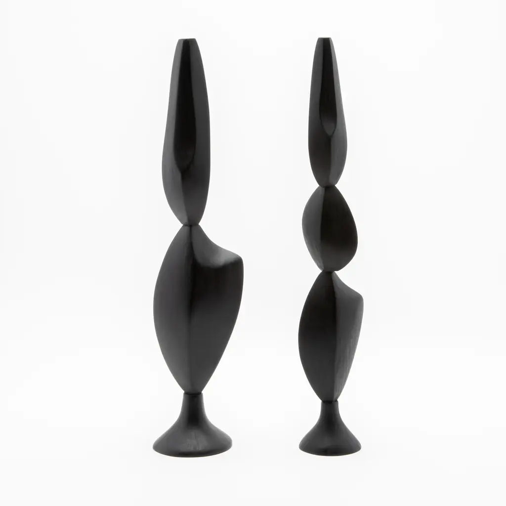 Pair Of Modern Abstract Sculptures In Black Oak By Patrick Coard Paris