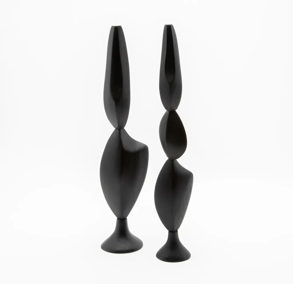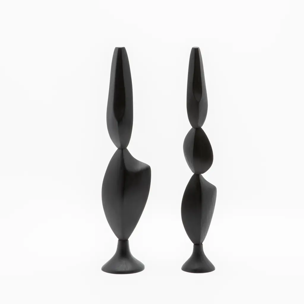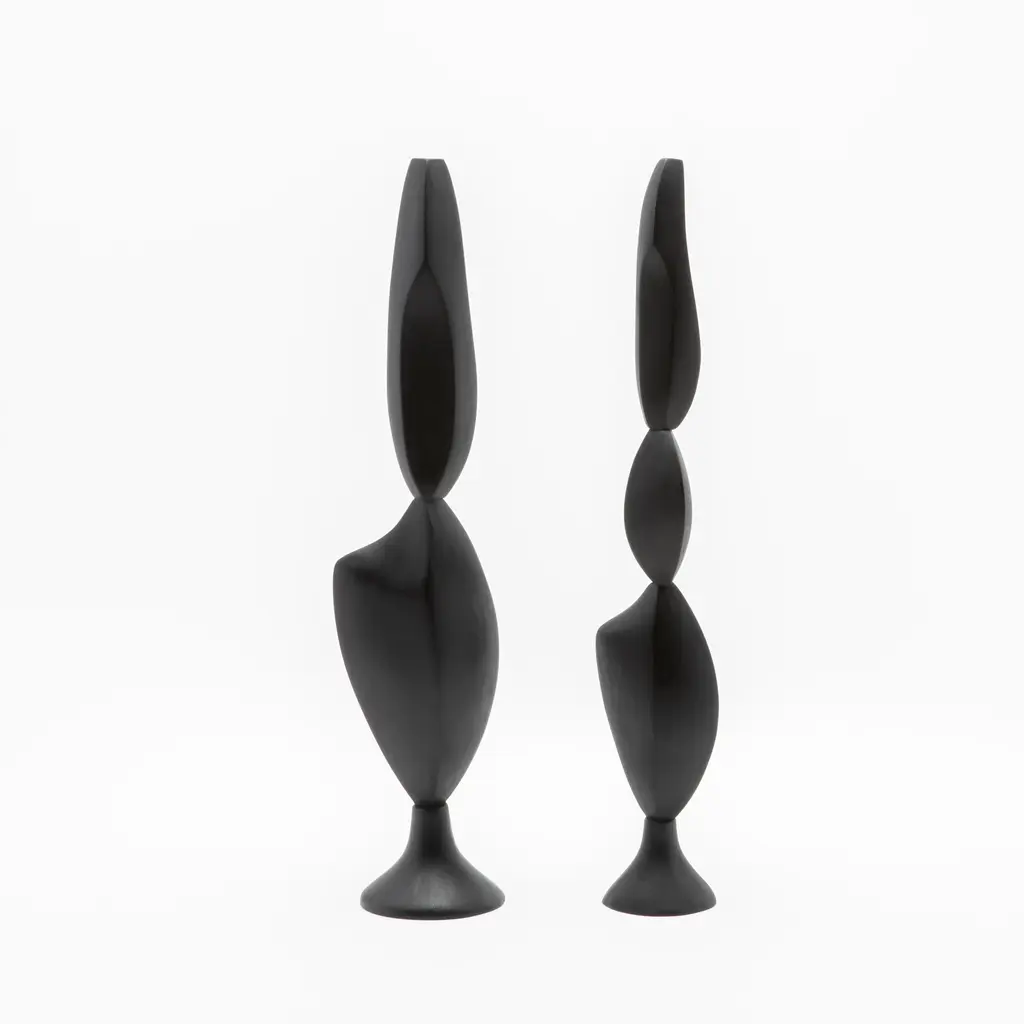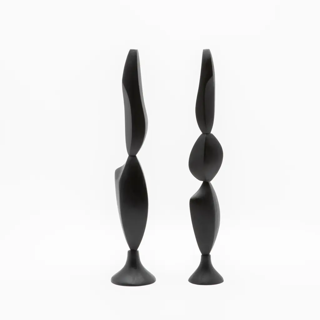 Pair Of Modern Abstract Sculptures In Black Oak By Patrick Coard Paris