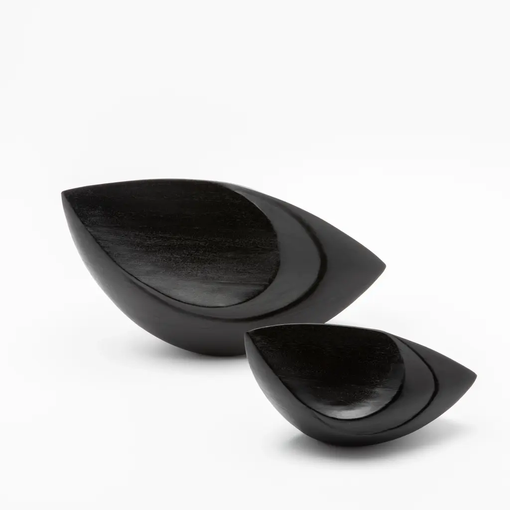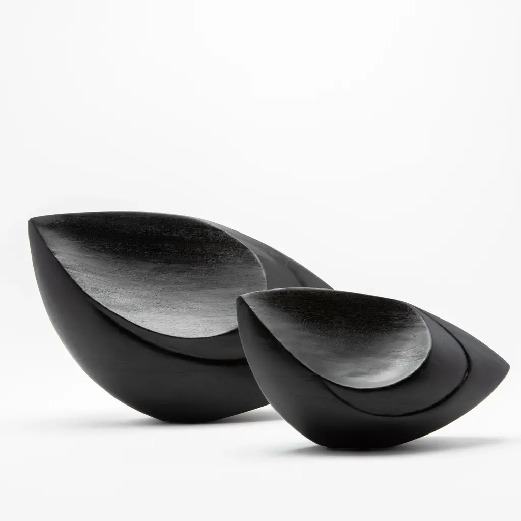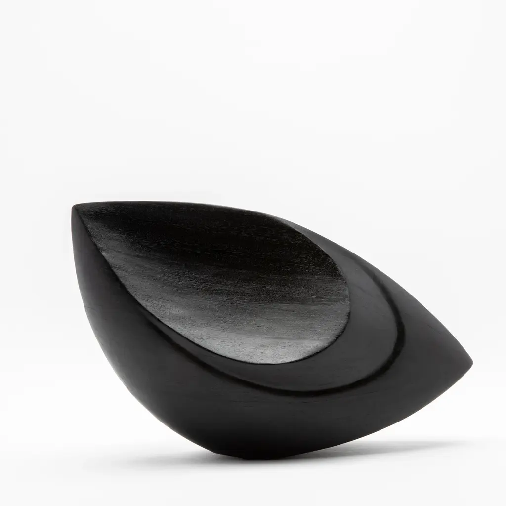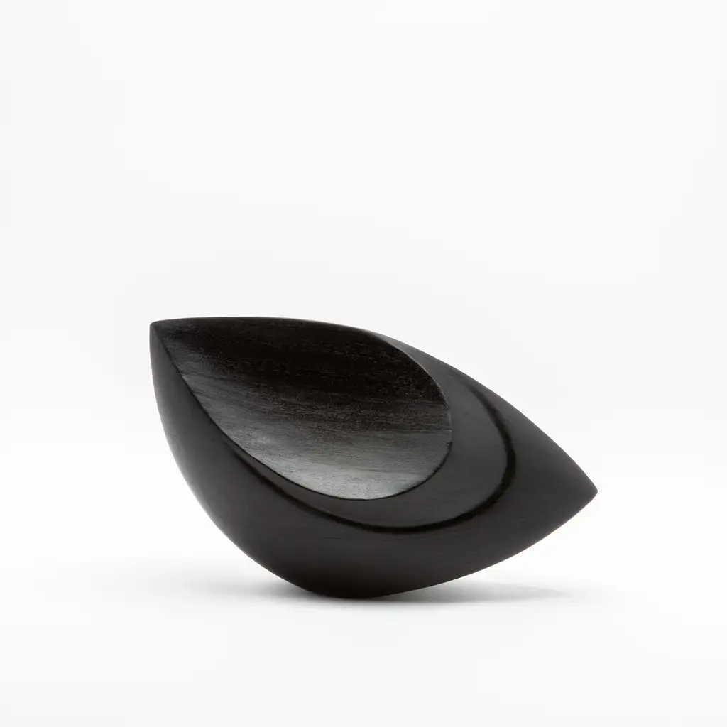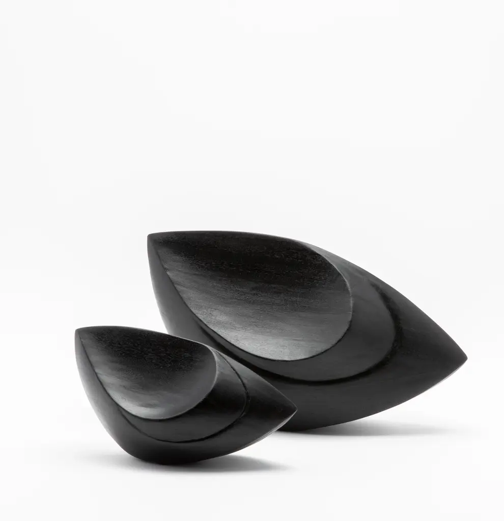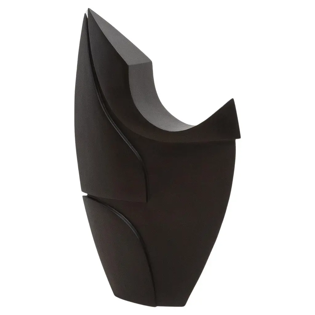 The "Birds Eye" sculptures by Patrick Coard Paris are an embodiment of modern abstract elegance. Expertly crafted from s luxurious black oak veneer inlaid on a fiberglass core, these hand-carved pieces boast a sleek, matte finish that accentuates their bold, fluid forms. The sculptures' design captures the essence of movement and grace, making them a striking statement in any setting. Their minimalist yet impactful presence is perfect for those who appreciate the beauty of simplicity combined with the artistry of handcrafted excellence. Each piece is meticulously hand-painted, ensuring a unique, one-of-a-kind creation that exudes sophistication and timeless style. SMALL: 10.43” X 4.72” X 5.31” MEDIUM: 6.89” X 15.74” X 8.78”