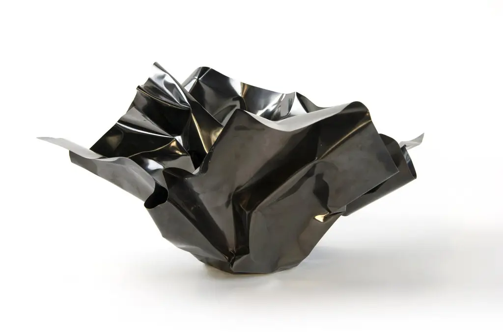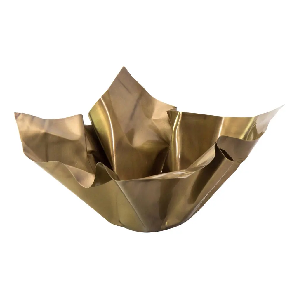 Paper darkened brass bowl III by Gentner Design.Dimensions: D 50 x W 50 x H 25.5 cm.Materials: darkened brass.Available in tarnished brass and darkened brass.The Paper Series embodies the idea of crumpling paper set in time. The materiality of the brass is utilized by the intricate folds and bends that not only resemble paper, but adds structure to the bowl. Each Paper is unique and hand sculpted in Chicago.Gentner DesignRooted in a language of sculpture, character defining details, and world renowned craftsmanship, the work is found at the crossroads of design and art.Established in 2011, the namesake furniture label is a rare combination of aesthetic dexterity and mastery of craft resulting in furniture and objects that are expressive, formal, and transcend materiality.The collection is based in metal and incorporates only natural materials such as leather, wood, and glass in unique ways, challenging our assumptions.Christopher GentnerChristopher Gentner, with a BFA in metalsmithing from the Cleveland Institute of Art and apprenticeships under sculptors and jewelers, together with dedication to craft, quickly developed his reputation nationally as a foremost authority of metal fabrication and furniture.One of his crowning achievements was the re-creation and fabrication of the Frank Lloyd Wright Robie House gates.These unique experiences are the foundation of his design philosophy which he employs in his own line of furniture, lighting, and objects.