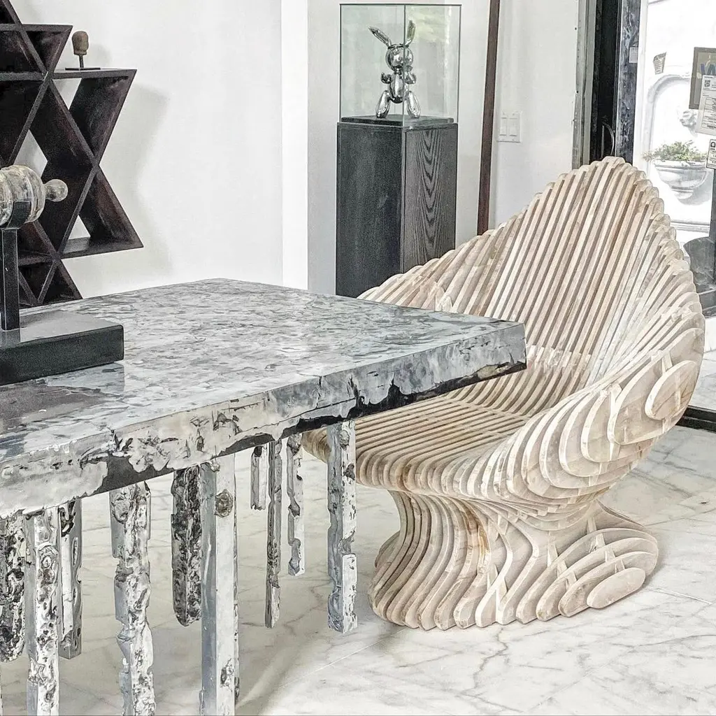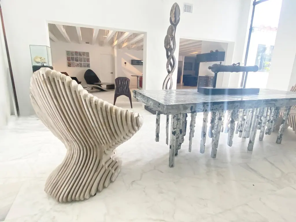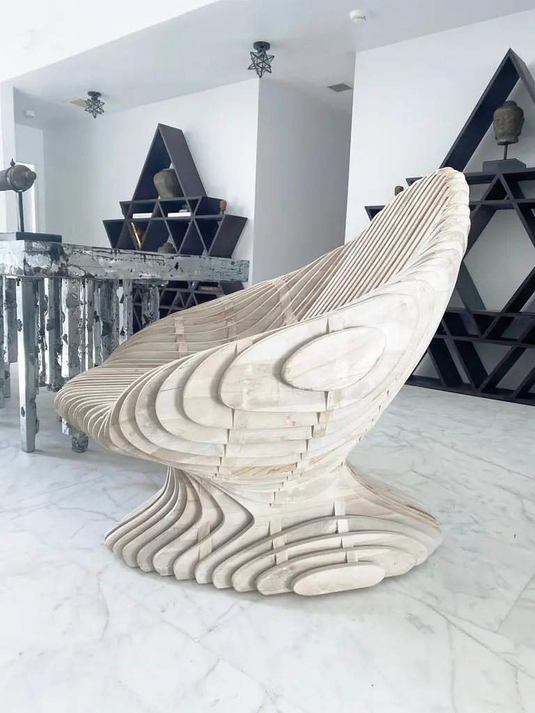 Limited edition parametric throne made of solid teak wood. Unlike most parametric furniture (which are machine-made), this piece is entire made by hand. Each chair is unique and has a more rustic, organic finish vs. machine-made pieces. This piece is white-washed to achieve an airy aesthetic that fits in all spaces.This parametric throne is part of designer and architect John Brevard's Morphogen series. Derived from the Greek word morphê (meaning "beginning of the shape"), the Morphogen collection features composed organic shapes that abstract, pulled, and stretched into fluid forms. These web-like diffusions are reminiscent of morphogenesis, the biological process that causes an organism to develop its shape. These pieces can be made to order to fit your specifications.About the materials:Teakwood has long been prized for its durability and versatility. Long used for furniture and decoration by elites in its native Southeast Asia, teakwood then made its way to Europe by way of Dutch merchants. In the west, it’s often used for shipbuilding, due to its hardness and ability to withstand humidity and ward off dry rot. Unlike more common woods such as pine and oak, teak retains its natural oils and rubber even after being felled and processed. Because of this, teak has greater naturally weather-resistant properties than almost all other wood. The oils and rubber effectively weatherproof the wood, making teak an ideal choice for outdoor furniture. The wood is also naturally protected from dry rot and from fungi and parasites that can destroy other woods. Given the long growth period of teak (typically 80 years until maturation), Brevard uses sustainably cultivated teak without irrigation or fertilizers for this collection in order to protect earth’s natural habitat. All pieces are made with the highest quality (Grade A) teak from the heart of the tree to ensure maximum durability and versatility. About John Brevard:John Brevard is a luxury lifestyle brand founded by American architect and designer John Brevard in 2007. The design ethos of John Brevard is the merging of past, present, and future in an ethereal way, through materials, textures, and fractal patterns that exist at all scales in the universe. Inspired by the principles of natural order, each creation is symbolic of the inseparable relationship of the part to the whole. The brand currently features fine jewelry, furniture, sculpture, and art. Creative Director Brevard is a member of the Council of Fashion Designers of America (CFDA). In addition, Brevard is currently the architect, Creative Director, and co-developer for Six Senses Ossura Valley, a sustainable resort slated to open in Iceland in 2022.