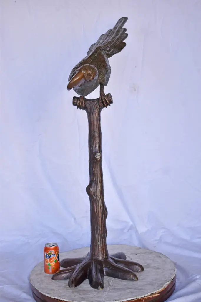 Parrot On A Tree Looking Down Bronze Statue - Size: 37"l X 15"w X 47"h.
