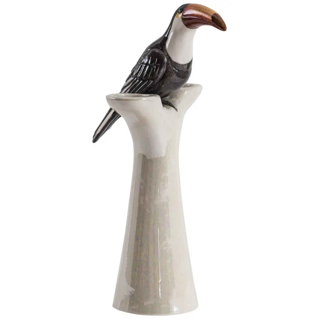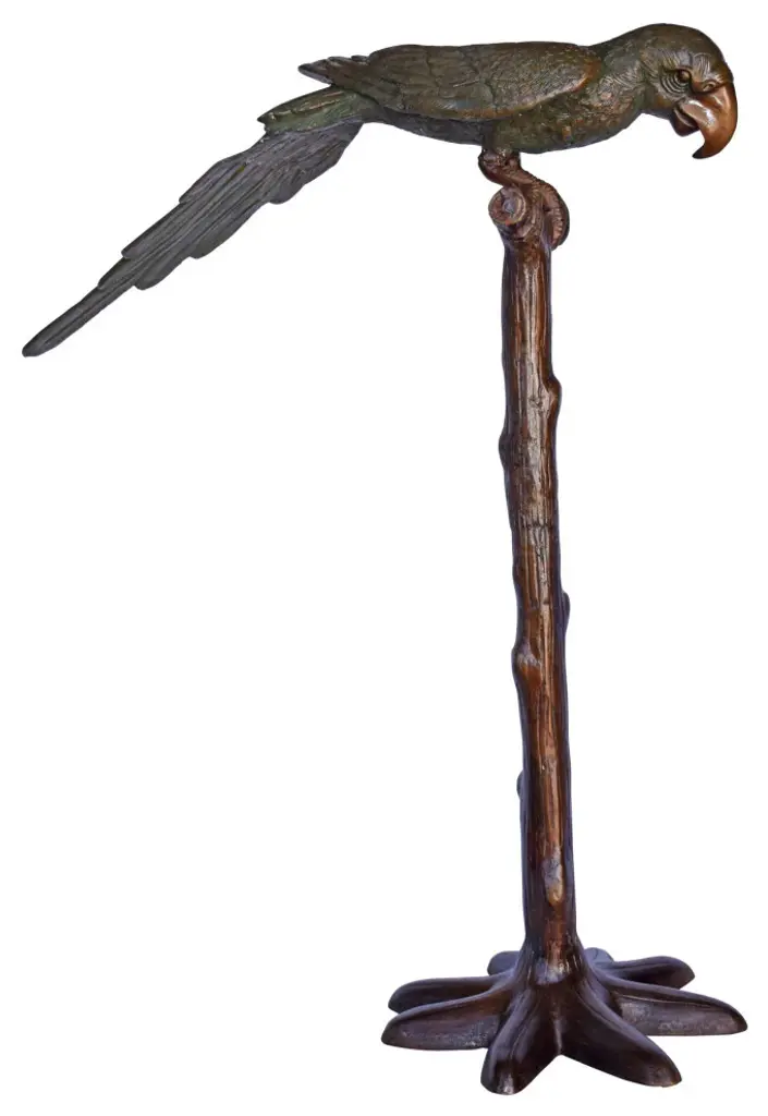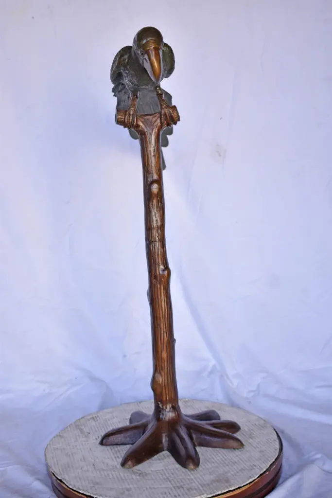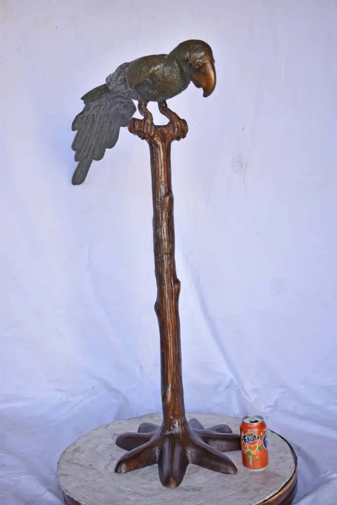 Parrot On A Tree Watching Forward Bronze Statue - Size: 36"l X 15"w X 41"h.