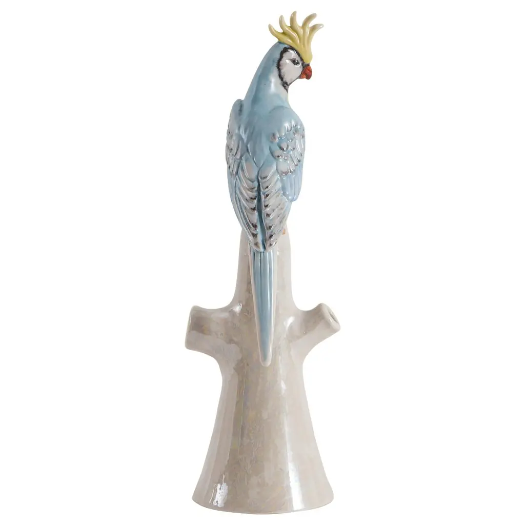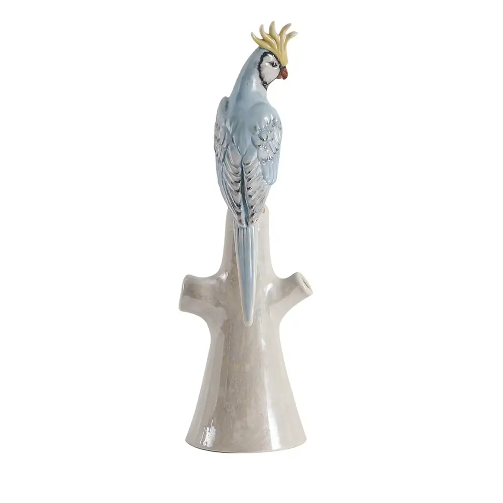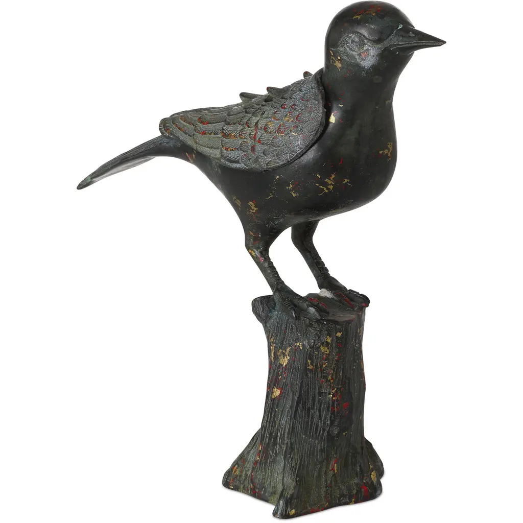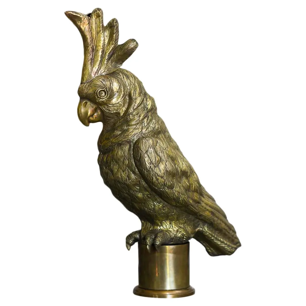 A life-size parrot made of bronzed metal perched on a tree trunk with bronze patina finish. This extraordinary sculpture is cast in the traditional lost-wax method, features a realistic tree trunk that supports a parrot rendered in life-size detail. The parrot is shown with marvelous detail to the feathers, beaks and eyes with a unique expression and pose. This impressive Bronze Statue will be a permanent fixture on the grounds of your estate for years to come. Size: 36"L x 15"W x 41"H. Weight is: 32Lb