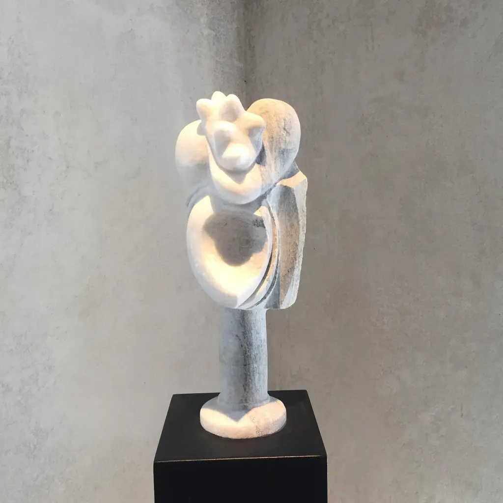 Part of the nature, marble sculpture by Tom von Kaenel.2020.Dimensions: loength 52 x diameter 18 cm.Materials: naxian marble.All the artworks of Tom von Kaenel are unique, handcrafted by himself.The stones all come from the surrounding marble quarries of the island. The Naxian marble is of white, grey or yellow-brown color, its structure is crystalline. No measuring instruments other than compasses and scales are used in the production of an object. The eye decides on the finalshape. The crystalline surfaces are shimmering. This gives the object a unique liveliness.Tom von Kaenel, sculptor and painter, was born in Switzerland in 1961. Already in his earlychildhood he was deeply devoted to art. His desire to bring beauty to the world is Tom vonKaenel’s inspiration, drive and source for the creation of his works.Already during his training as a technical draughtsman and later as a teacher of pictorial design, he devoted himself to painting and three-dimensional work. Tom von Kaenel has exhibited his work in various solo and group exhibitions. For seven years he was represented by Galerie Ute Barth in Zurich.Today Tom von Kaenel lives and works on the island of Naxos. Everything in his environment inspires and shapes his work. He creates objects and sculptures out of Naxian marble in craftsmanship liveliness and timeless beauty.