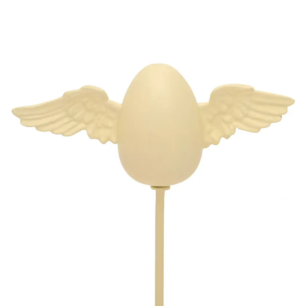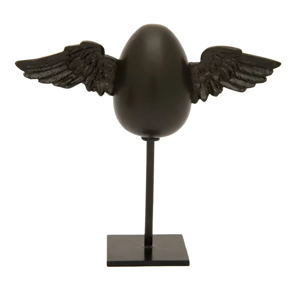 This elegantly sculptured resin egg in a chalk white finish, with protruding, majestic wings of oxidized silver represents dreams. The piece is the second in a sequence of five ornamental lucky charms by Bottiglieri.