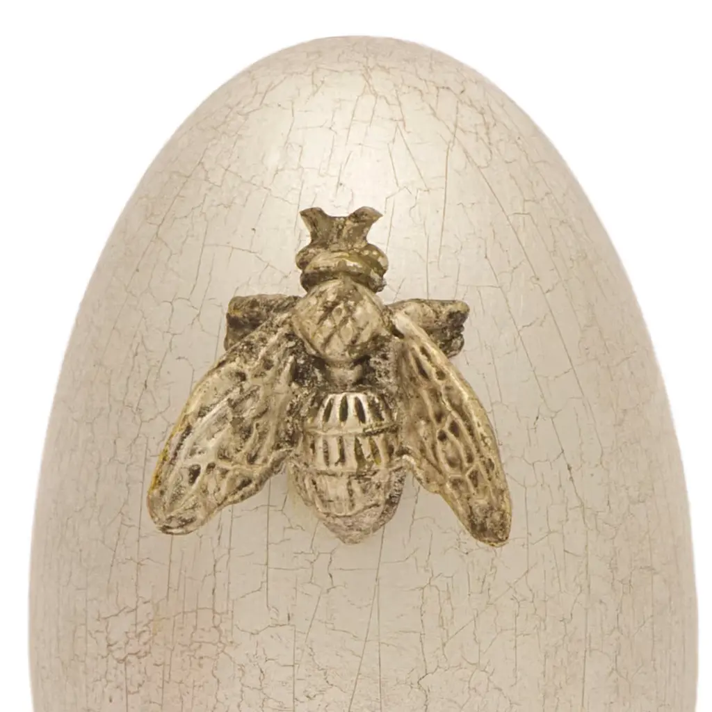 This respelendent resin egg finished with gold leaf represents fertility. The refined form of the diligent bee crawling up the sculpture symbolizes strength and perseverance. The piece is the third in a sequence of five ornamental lucky charms by Bottiglieri.