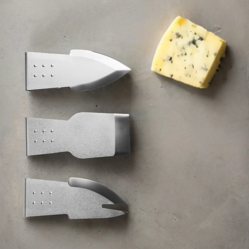 Ideal for presenting a cheese board in style, this cheese knife set is the perfect accompaniment. With three knives tailored for different types of cheeses, it ensures a refined and efficient serving experience. Crafted from tempered AISI 420B steel, these knives are not only robust and durable but also hygienic, free from welds, coatings, or plastics. Elevate your cheese tasting with this meticulously designed set, making it a must-have for any cheese enthusiast or connoisseur.