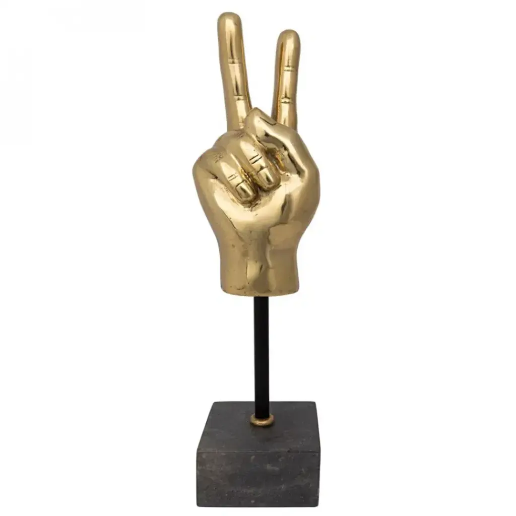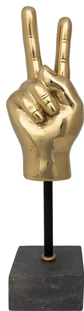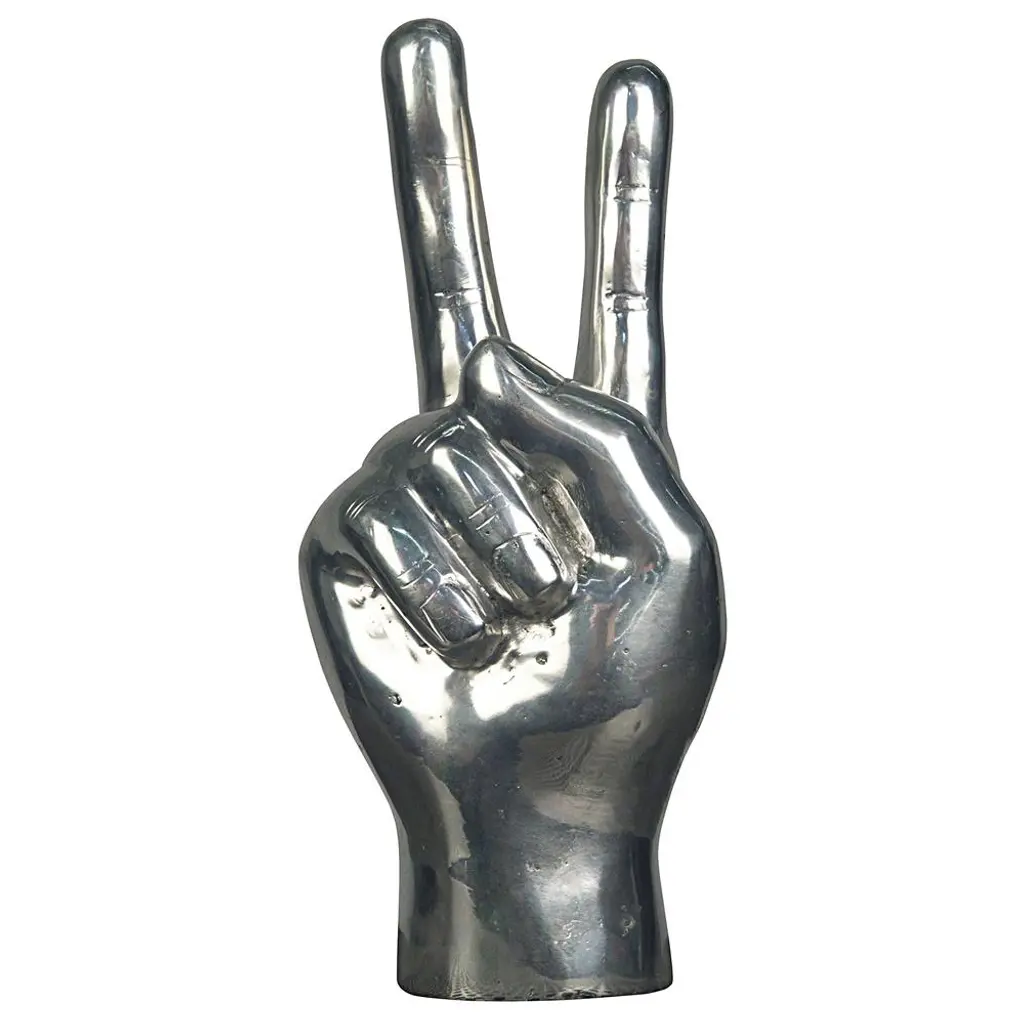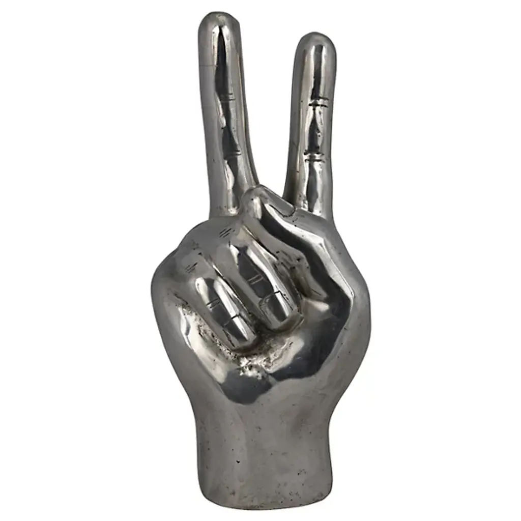 Peace Sign Invite the feeling of Zen to any space with this beautiful Peace Sign hand sculpture, crafted from high-quality resin. Language barriers are nonexistent with the universal sign, which is synonymous with peace, love and harmony. Perfect for your home or office, this conversation piece can be used as a desk and mantle piece or placed anywhere you desire! Features • Available in Silver • Made from Durable, high-quality Resin • Hand Crafted Weights and dimensions • Measure 6 x 3 x3 inches • Weight 1lb