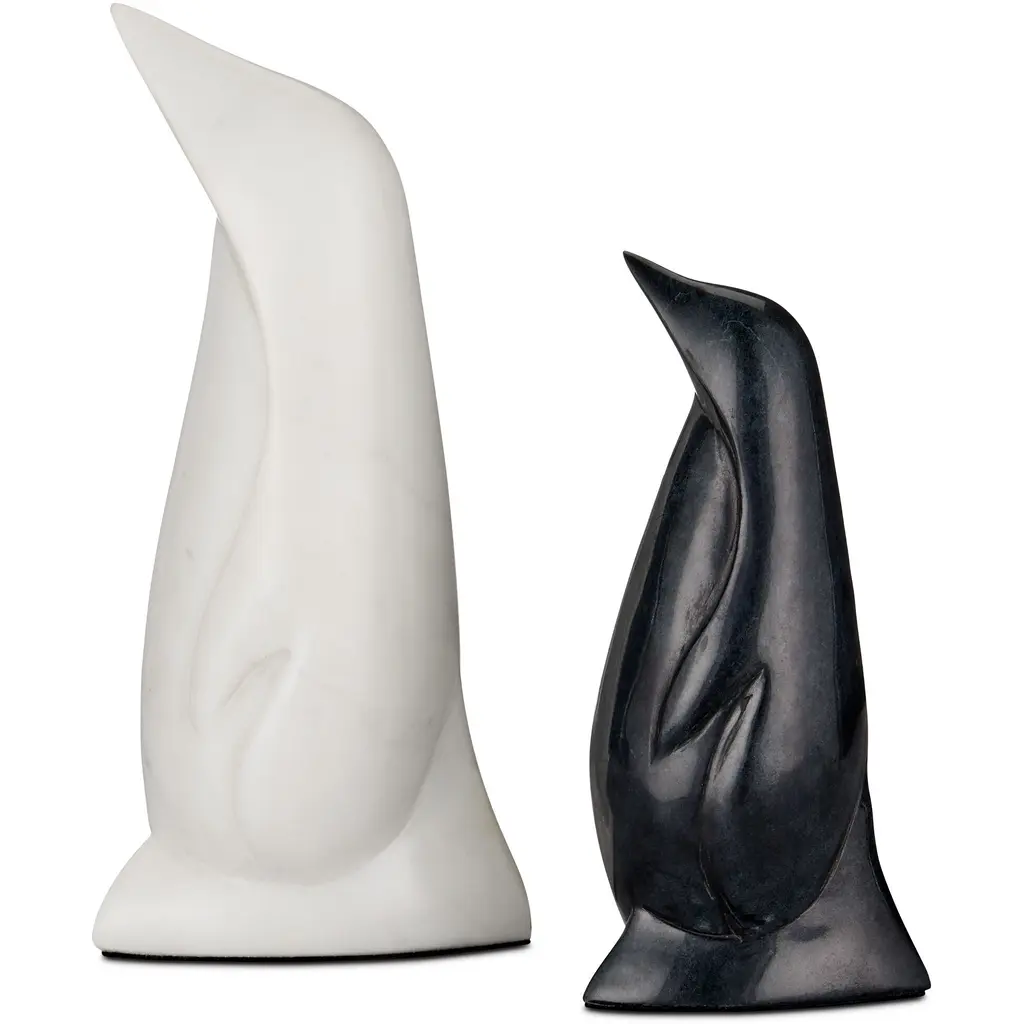 The ultra-contemporary lines on each of the Black & White Penguin sculptures create pared-down profiles that have just as much personality as the marine birds. As whimsical as they are modern, the black and white sculptures are carved from soapstone and honed to a smoothness that creates a nice sheen. The surfaces of the objects will vary from piece to piec,e given the sculptures are made of natural stone.