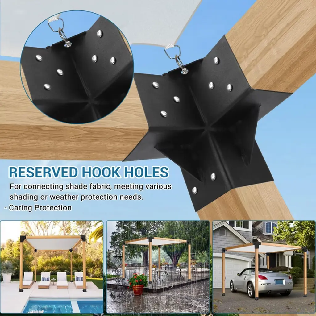 Pergola Brackets, 6''x6'' Pergola Kits - 4-way Heavy Duty Corner Brackets For Wood Beams, Easy Assembly For Gazebos Patio Log Cabins