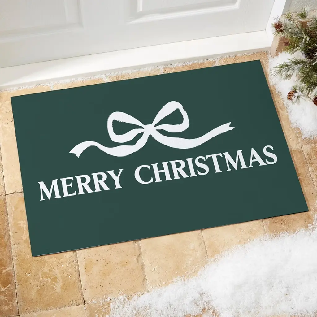 Personalization Mall Christmas Bow Doormat, 18x27, Green