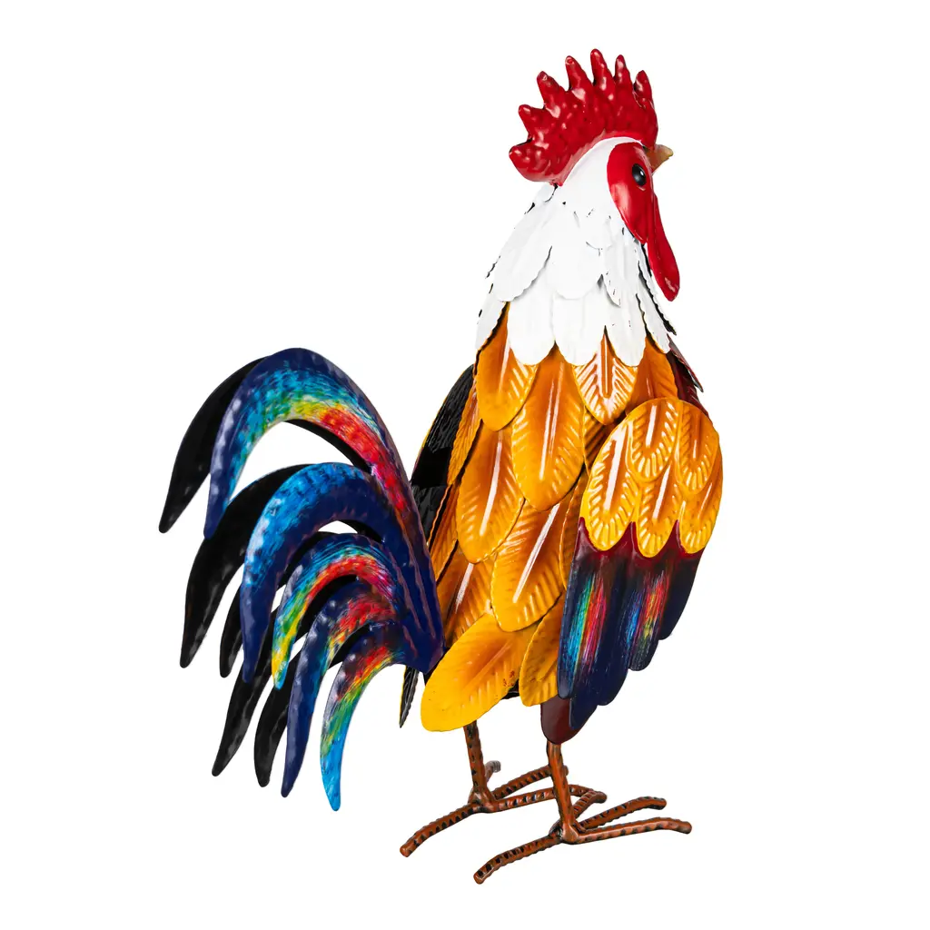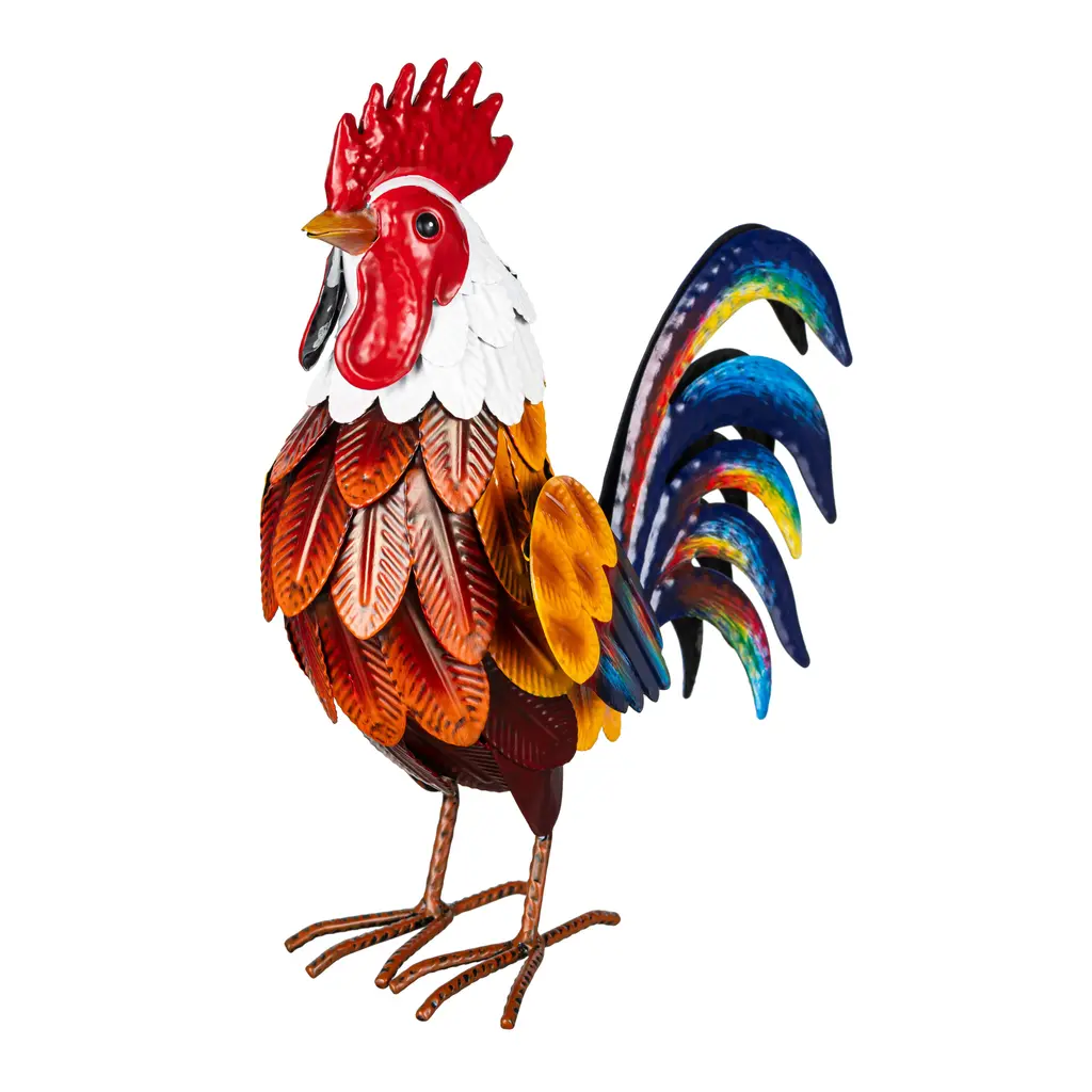 Petal & Plow Garden Statue, Metal Colorful Rooster 12"h