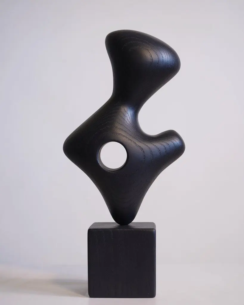 Petite Noire Scuplture by Chandler McLellanDimensions: D 7,6 x W 10,2 x H 30,5 cm. Materials: Ebonized ash.Please expect minor differences in wood grain and other naturally occurring details. The sculpture will be signed and dated. Please contact us.Chandler McLellanI was born in 1993 in Fort Wayne, Indiana. I am a trained carpenter and cabinet maker with a degree in Archeology. I have been working as a full-time artist since 2018. I currently live in Wyoming, where the open landscape and relative isolation fuel the escapism I seek out in my artistic practices. I am inspired by the past and the renditions of the future. I hope to create objects that inspire stories, interpretation, and imagination, regardless of the passage of time.My work has appeared in Vanity Fair, Elle Decor, Grazia, New York Post, Hype Beast, RUM, Ark Journal and more.My work has been used by HBO, Amazon Prime Video, and ABC studios.