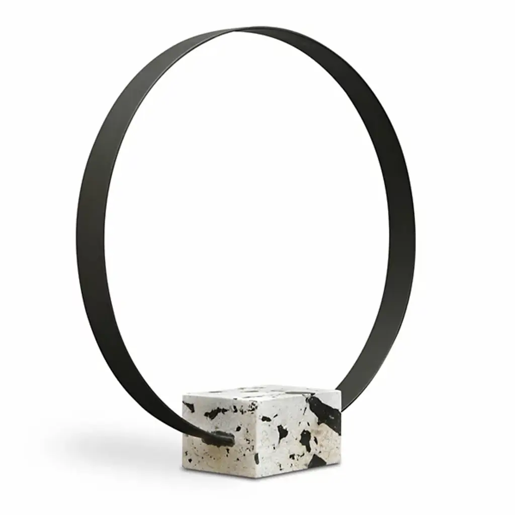 The Petra Sculpture celebrates the strength and endurance of natural stone and infuses a space with organic tones. A gorgeous, smoothed stone takes center stage, held aloft by a marble base and supported by two small brass rods.