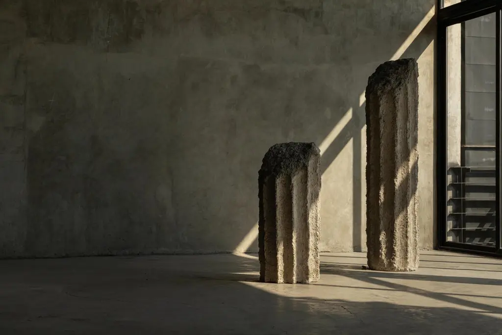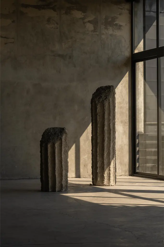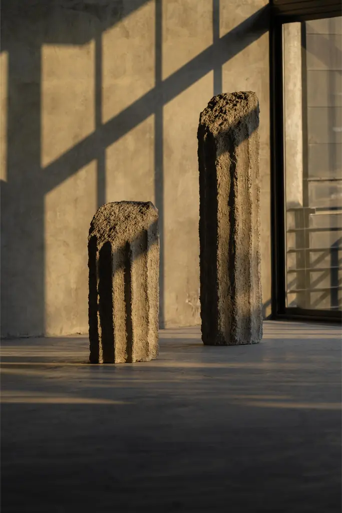 Pilares Sculptures by NUDADimensions: ⌀ 45 x H 170 cm / ⌀ 45 x H 100 cmMaterials: Concrete, Rebar, Sand, SoilOther colors available, please contact us for any requests. Born in cities yet to be born, facing a desolate landscape.The collapse of the structure as a formative path.NUDA makes readings of space under four forms of thought; Architecture, Landscape, Art and Acoustics. A transdisciplinary studio sustained by a philosophy oriented towards contemplation, exploration and questioning of current architectural processes. Grounded in a sensitive and functional analysis of space.