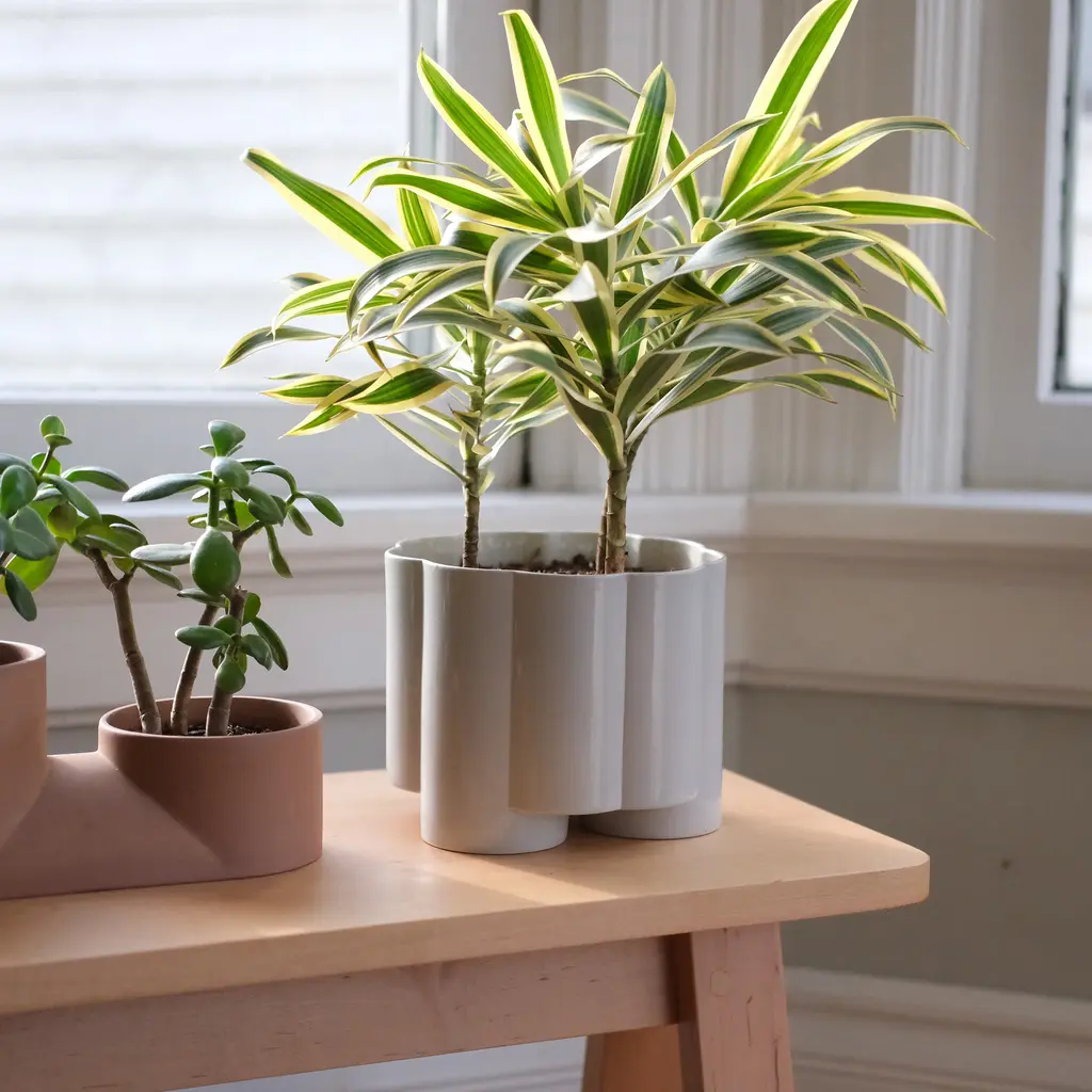Spruce up your home décor and your favorite plants with the Misewell Pillar Planter. The creative design combines cylindrical forms in an asymmetrical sculpture to add an artistic accent to any space. Like all Misewell products, this planter is made in the USA. Crafted by hand in the company’s own ceramic studio, Pillar features a tactile finish that enhances the light neutral colors of Dune, Blush and Gray. The legs extend below the fluted pot to raise the planter above the shelf, table or floor. Included with Pillar, the drainage plate provides an easy way to keep plants hydrated and healthy.