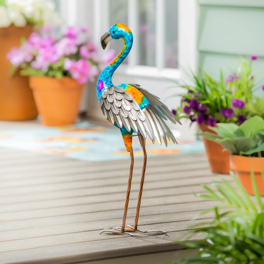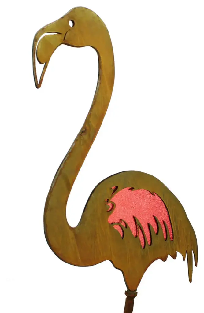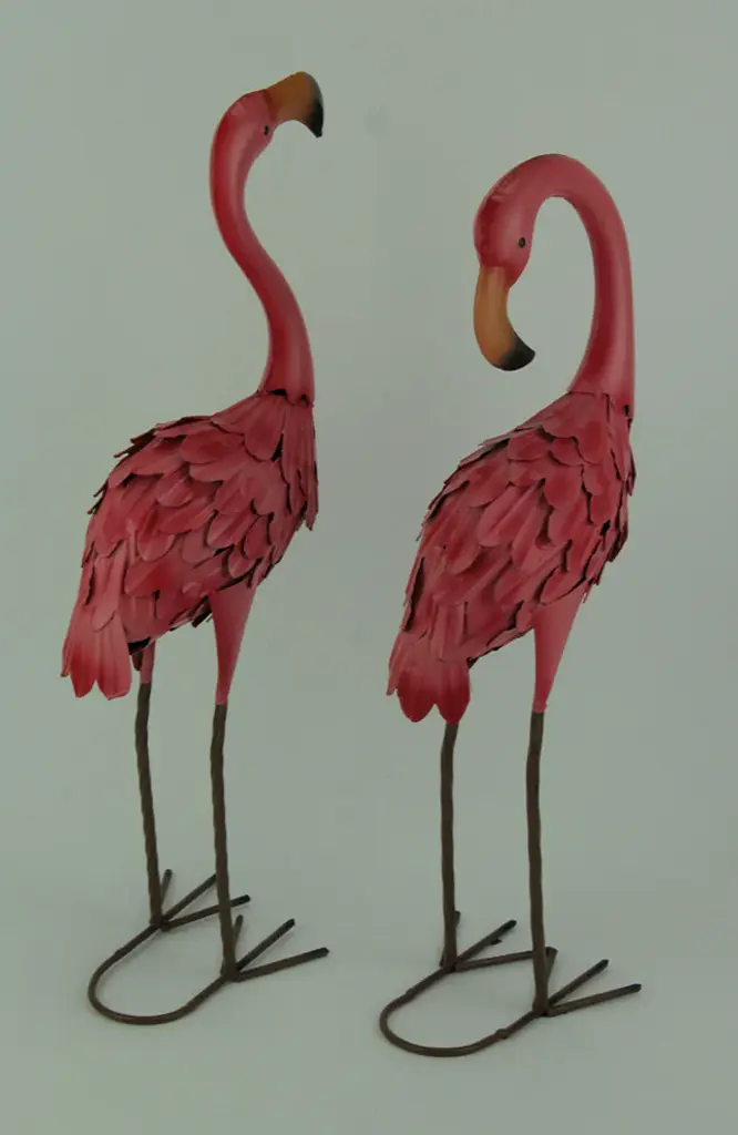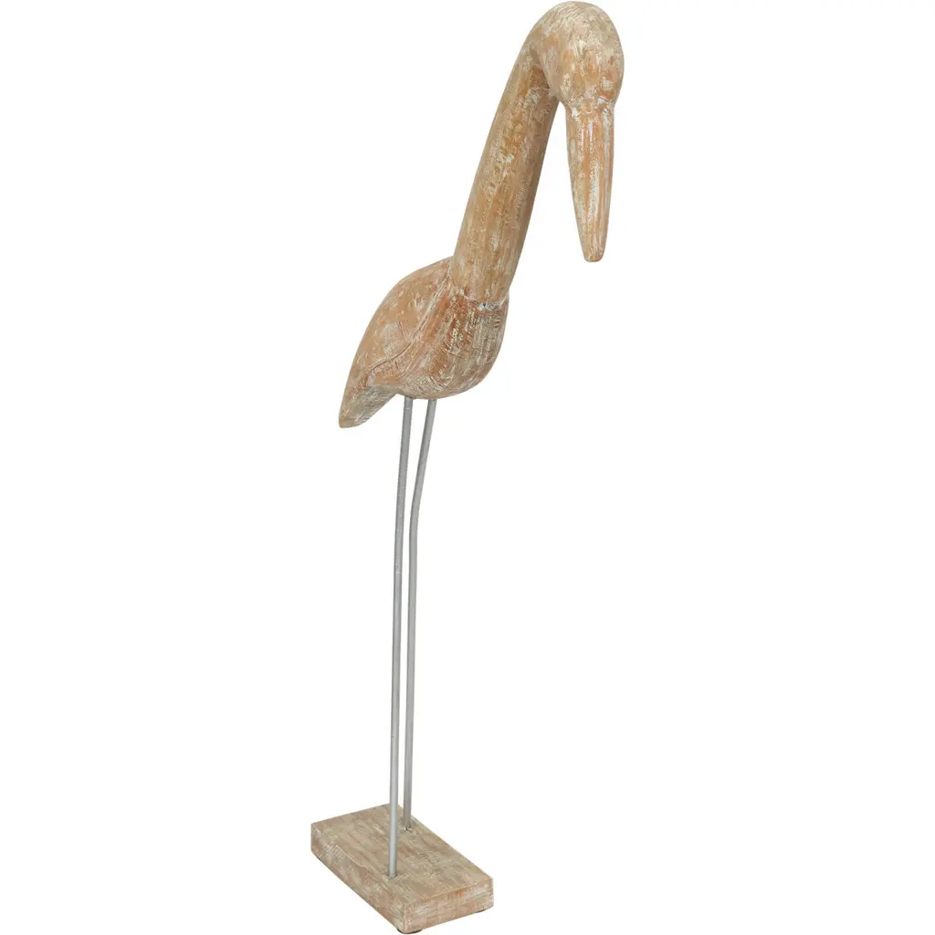 Flamingos and their poetic frailty inspired this stunning zoomorphic sculpture in extruded polyurethane, its streamlined stem standing for the birds' signature extra-thin and elongated legs. Fitted to a raw iron base, the body of the flamingo is finished with an application of plaster on relief and precious copper leaf for a striking interplay of shimmers resulting emphasized when the piece is hit by the light.