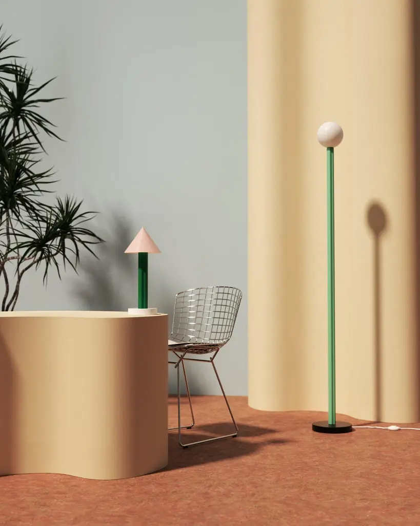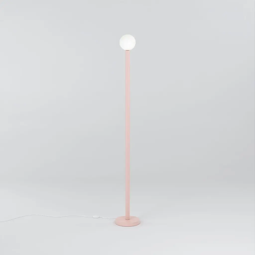 Pink Profiles Floor Light by Atelier AretiDimensions: D 20 x H 156.7 cm.Materials: Powder-coated metal, white glass.Available in other colors. Please contact us.All our lamps can be wired according to each country. If sold to the USA it will be wired for the USA for instance.Atelier Areti was established by sisters Gwendolyn and Guillane Kerschbaumer.Gwendolyn and Guillane’s background is in visual arts - drawing and sculpture, architecture, and design. Their work reflects this interest in both the object and space, exploring and existing between the sculptural quality of the object and its spatial dynamic.‘We strive to develop something new and beautiful through our work. We are driven by curiosity and the desire to explore works that touch us on a deeper, direct emotional level as well as engage us in a more conscious conceptual way.These artistic ambitions need to be realized and developed in the actual material product. The material realization gives the design it’s place in our daily life. A well done object will be valued for a long time; we aim to create pieces that remain relevant through their beauty, function, and quality.’