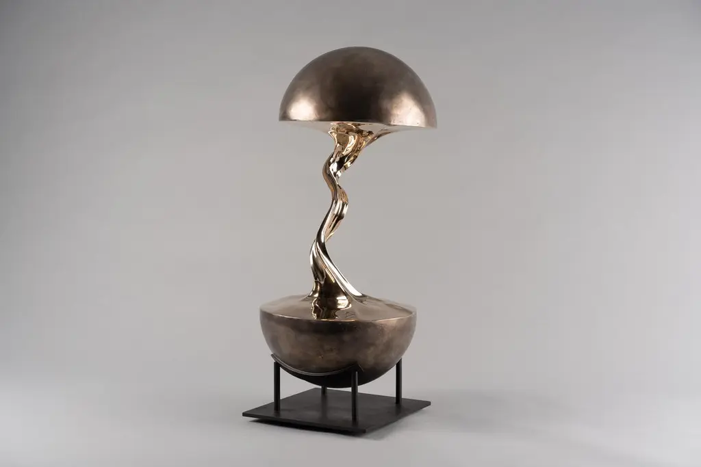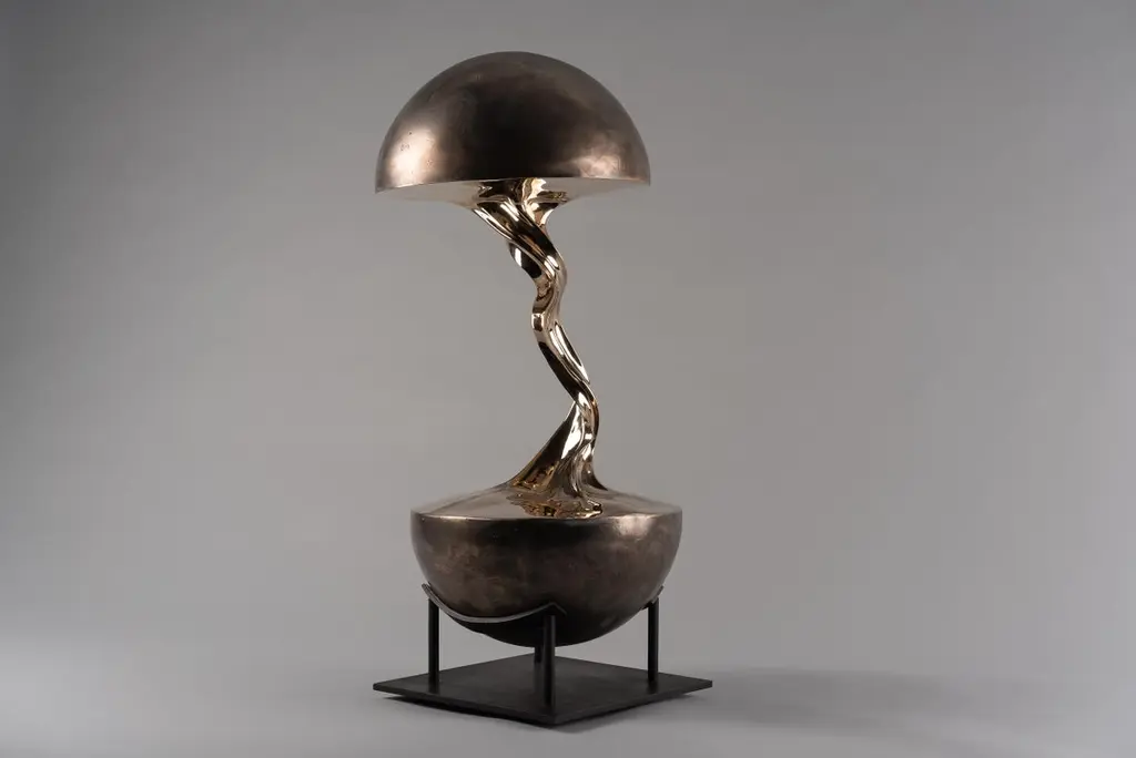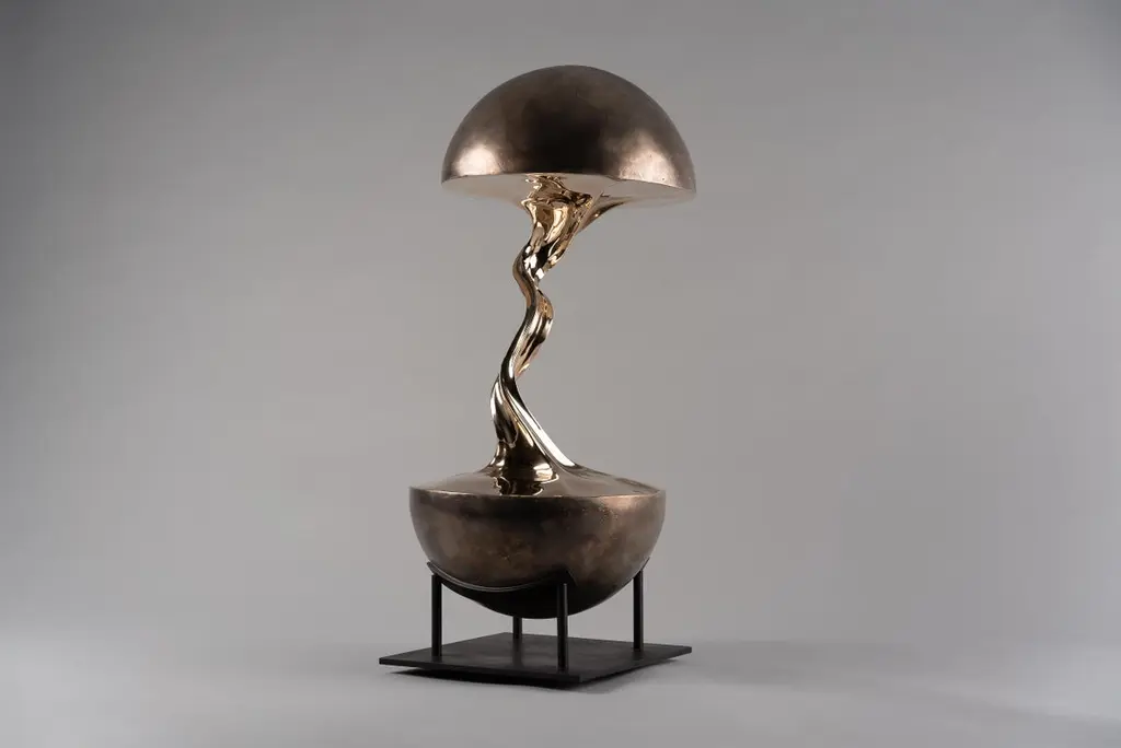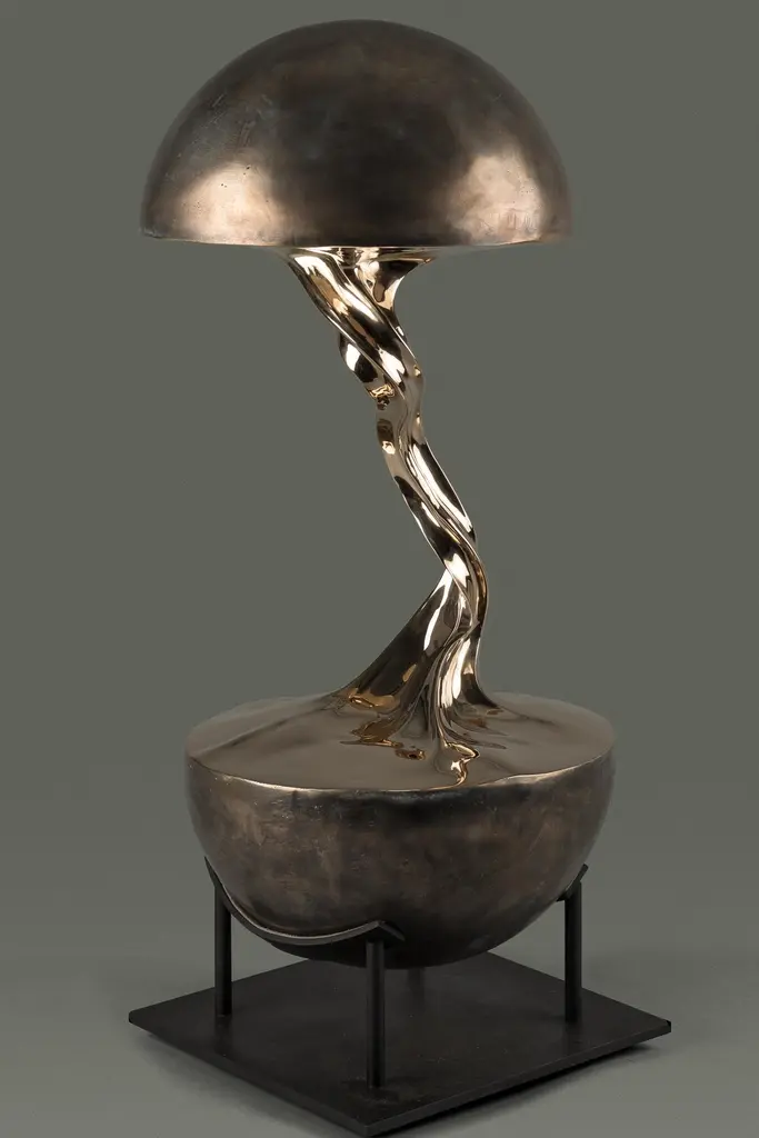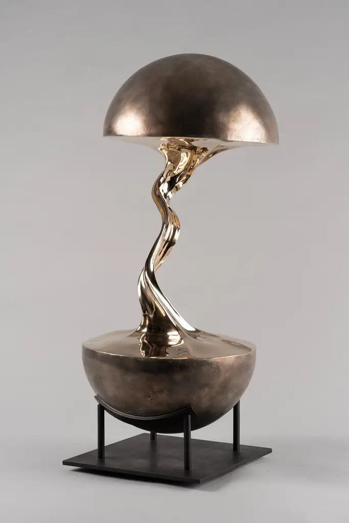 Planet 01 Sculpture by Kris Lamba StudioDimensions: W 30 x D 30 x H 65 cmMaterials: Polished bronze.Weight: 25 Kg.Kris Lamba was born in London in 1984. He creates large and small-scale sculpture, paintings and edition based collectible design. Eschewing tradition media, he works with a variety of industrial biopolymers which Lamba manipulates whilst still molten, often at extreme temperatures. Using a combination of great force, gravity and a pioneering technique of polymer-stretching, he creates otherworldly forms; shapes that defy convention and echo the spontaneous and often violent moments of interstellar creation. Aiming to partly remove the element of ‘self’ Lamba adjusts only certain parameters: temperature, quantity, molecular weight and the applied force. Then, using custom designed machinery he pulls apart the molten material, selectively freezing and re-heating where necessary; the resulting shapes seemingly grown rather than made. After a period of consideration, the forms are refined and re-worked over a period of weeks and are either cast in bronze using the traditional ‘lost-wax’ method, or are finished in precious metals, pigment rich paints and composite resin fabrics.Creating work is an energetic process for Lamba, his pieces becoming expressions of a singularity; ideas forged though intense experimentation, later undergoing gradual stages of refinement and craftsmanship. Originally a trained classical percussionist Lamba then went on to study contemporary design. His stretched and manipulated sculptures can be seen as a rebellion against the confines of working within tradition; their spontaneous forms defying and reworking traditional artistic practice. His recent series of raw pigment sculptures go further to reinforce this point, warping the very space that they occupy. Lamba’s work has been published worldwide to widespread critical acclaim and is held in several prominent collections. He currently lives and works near Brighton, UK.