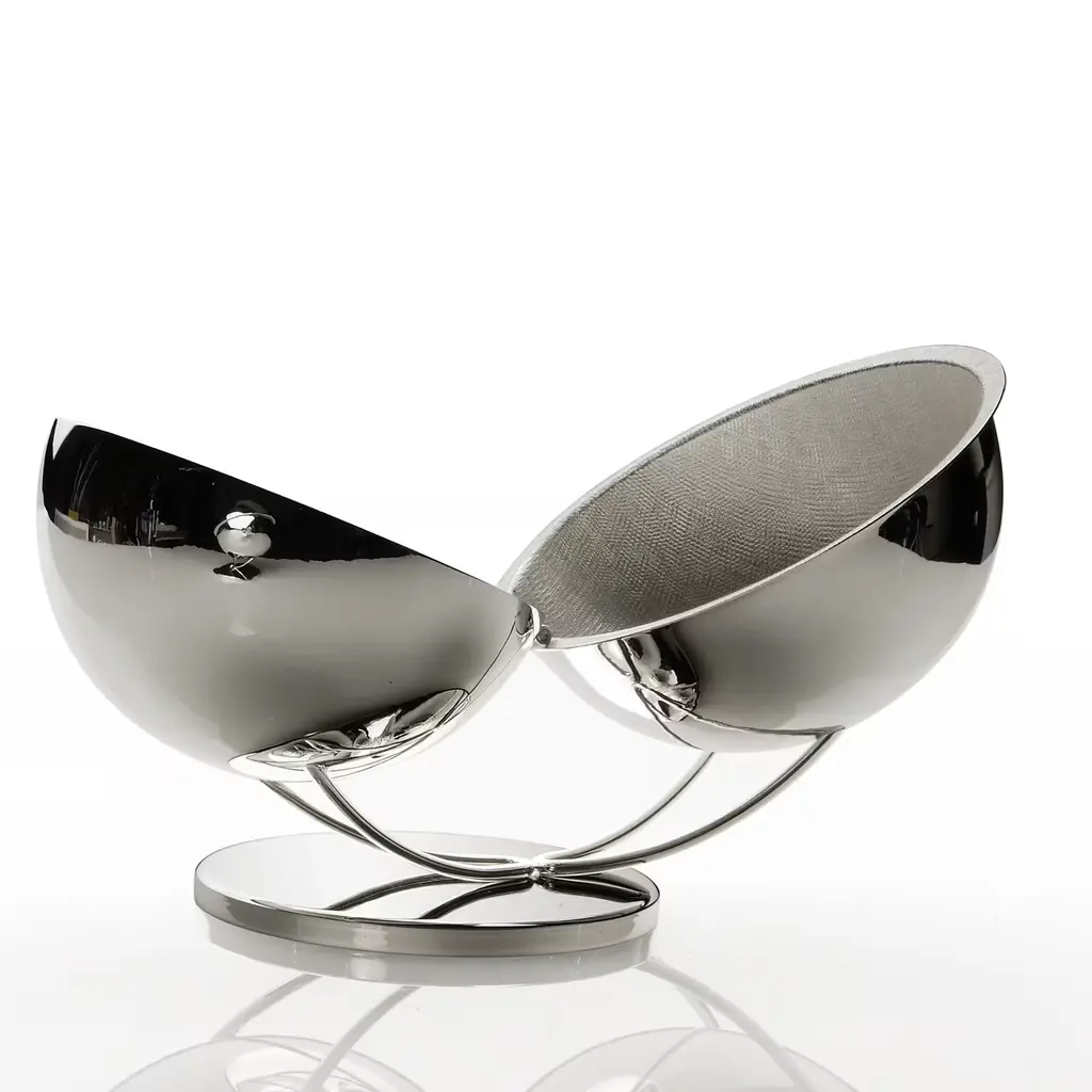 Eccentric sculpture is constructed in a silver-plated alloy. This incredible design demonstrate sophisticated techniques of working metal.