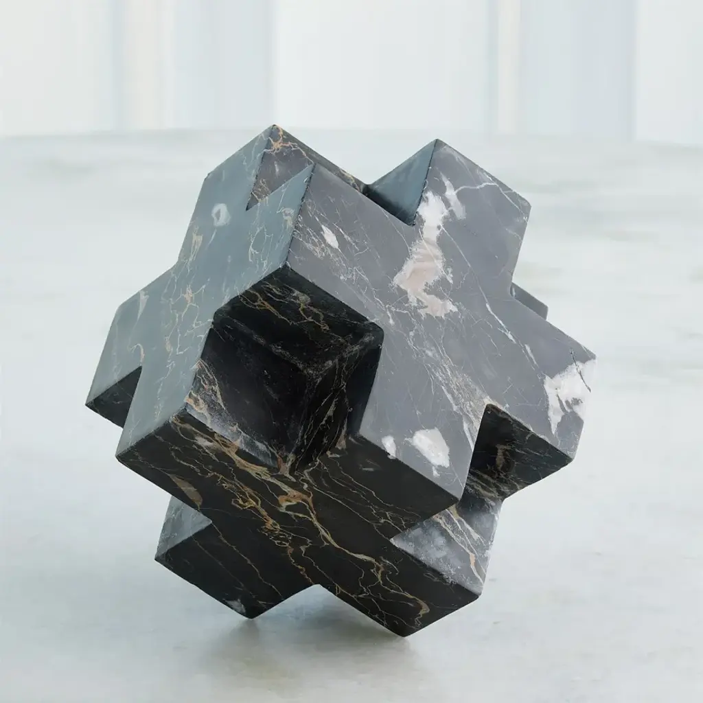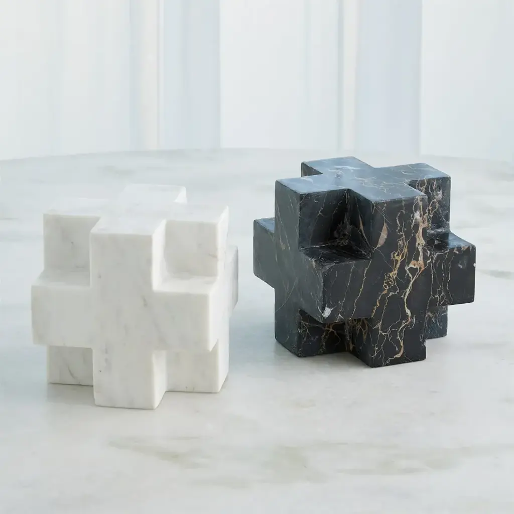 The Plus Sculptures are stunning works of art crafted by artisans who skillfully hand-carve white Banswara and Golden Portoro black marble to perfection. As marble is a natural product, please be aware that there will always be variations in veining and color. This is to be expected and makes every marble product uniquely your own. From a fashion forward perspective, Global Views offers accessories, furniture, statement lighting, and an assortment of rugs and mirrors to add beauty and joy to your home.